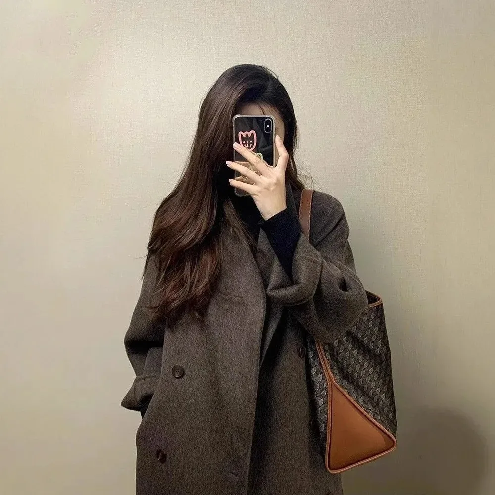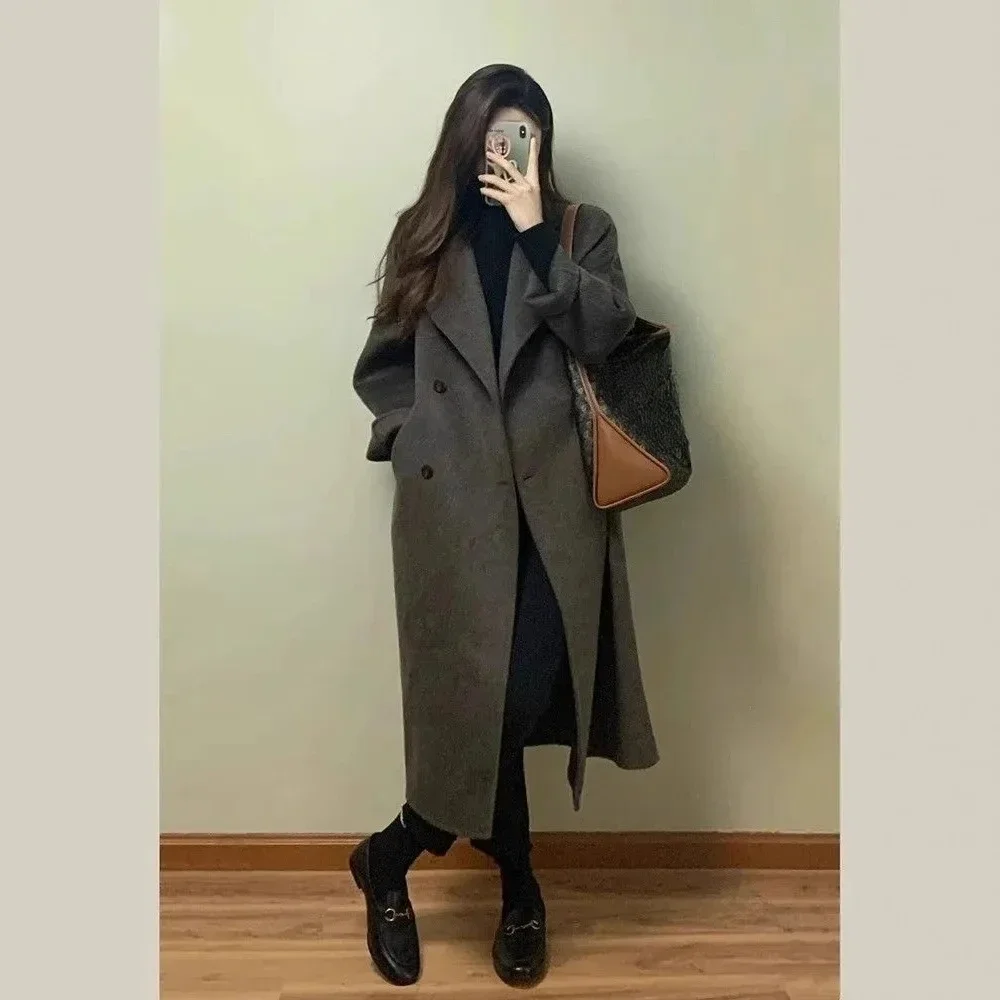 Thickened Over-Knee Mid-Length Woolen Coat Women's Autumn Winter Fashion Korean Style Women's Outerwear Polyester Fiber
