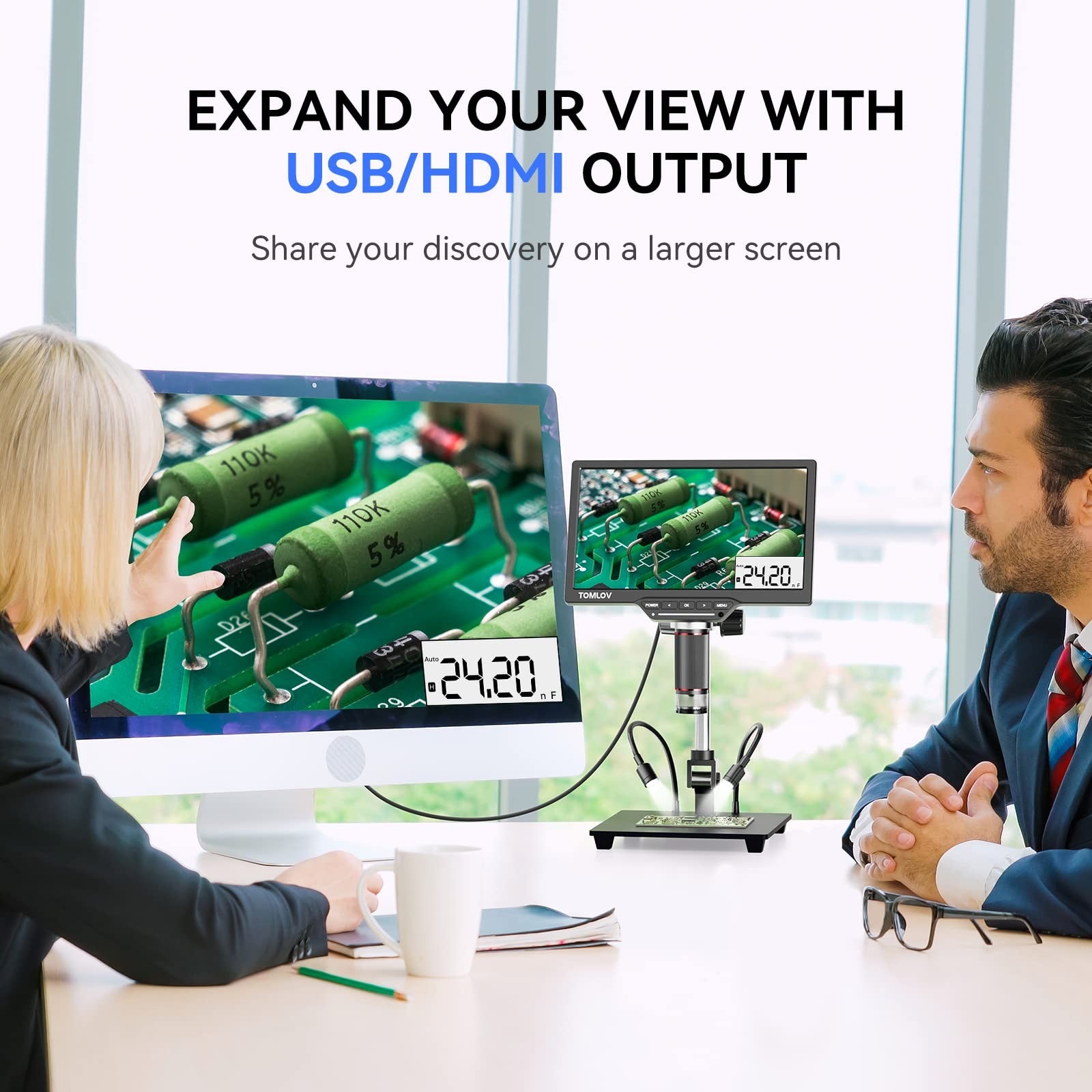 ��【 The First Digital Microscope with Multimeter】TOMLOV DM202M digital microscope combines image and video capture capabilities with multimeter function, making it a versatile tool for electronics repair and testing.allowing for accurate measurement of voltage, resistance, diode, frequency, line on-off test, and capacitor. Users can easily test and diagnose electronic components, enhancing soldering microscope's functionality and usability.