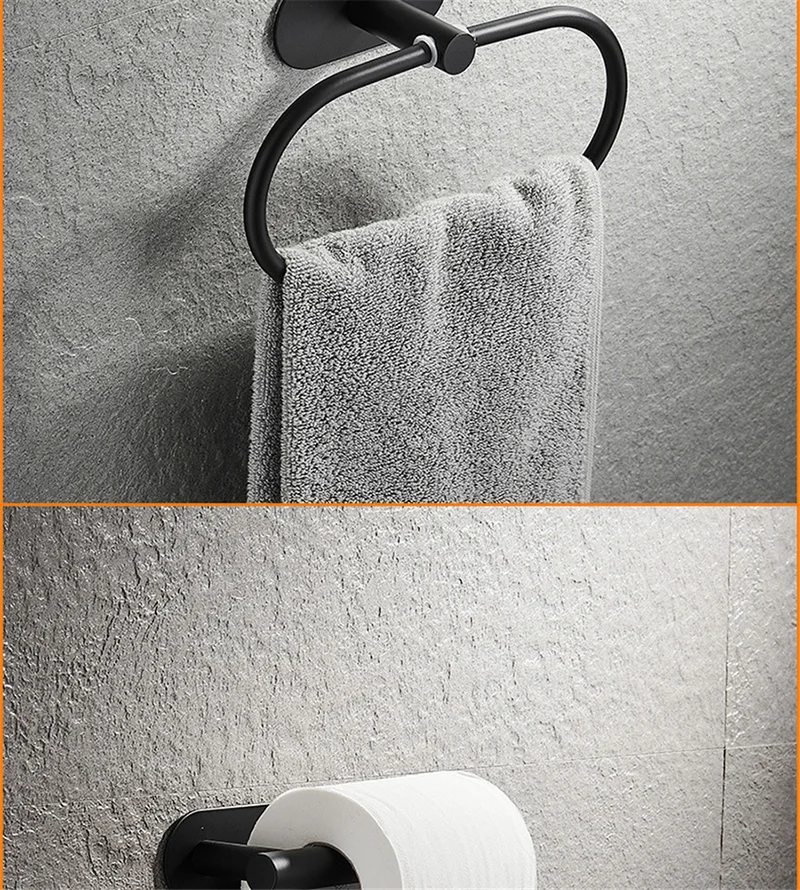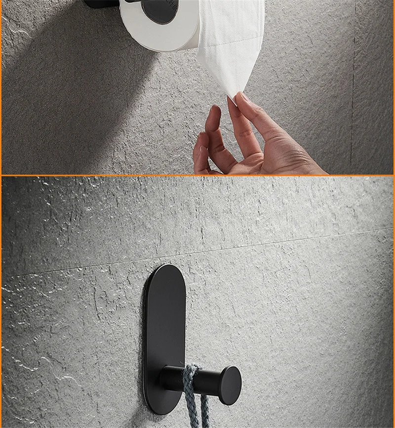 Non drilling stainless steel self-adhesive towel strip paper holder robe hook towel ring black silver gold bathroom accessory set