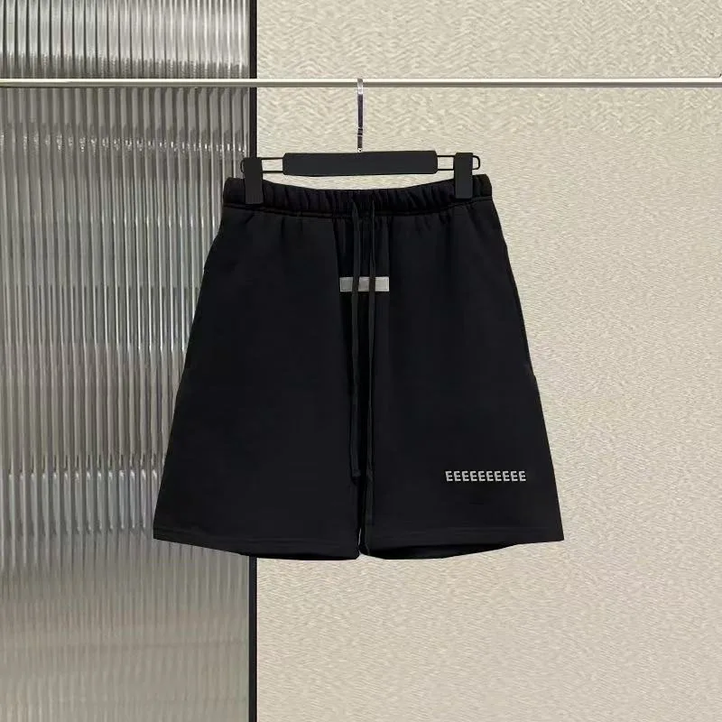 Trendy Brand Men's Cotton Shorts with Luxurious Design Double Row Flocking Letter Logo Shorts Couple's High Street Loose Shorts