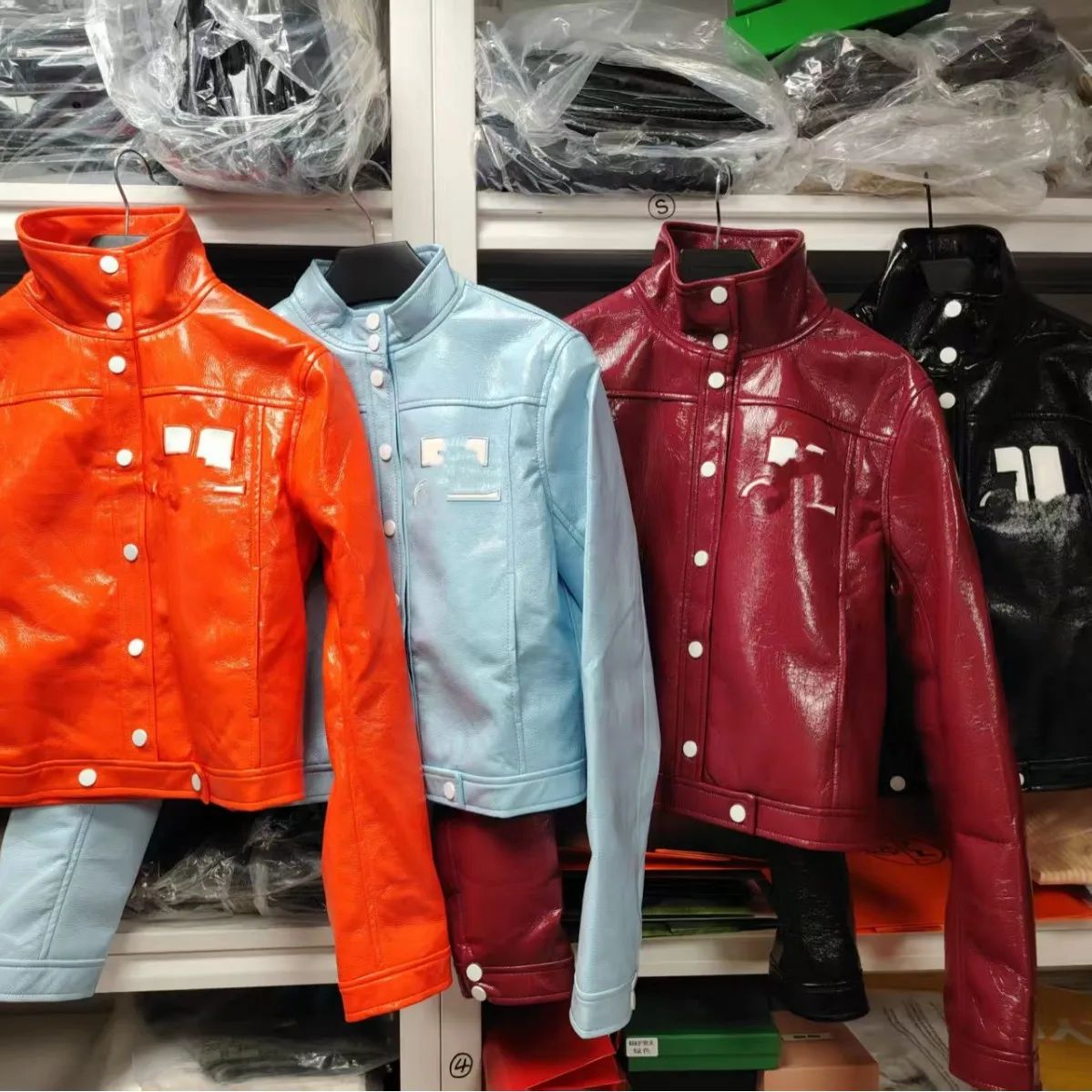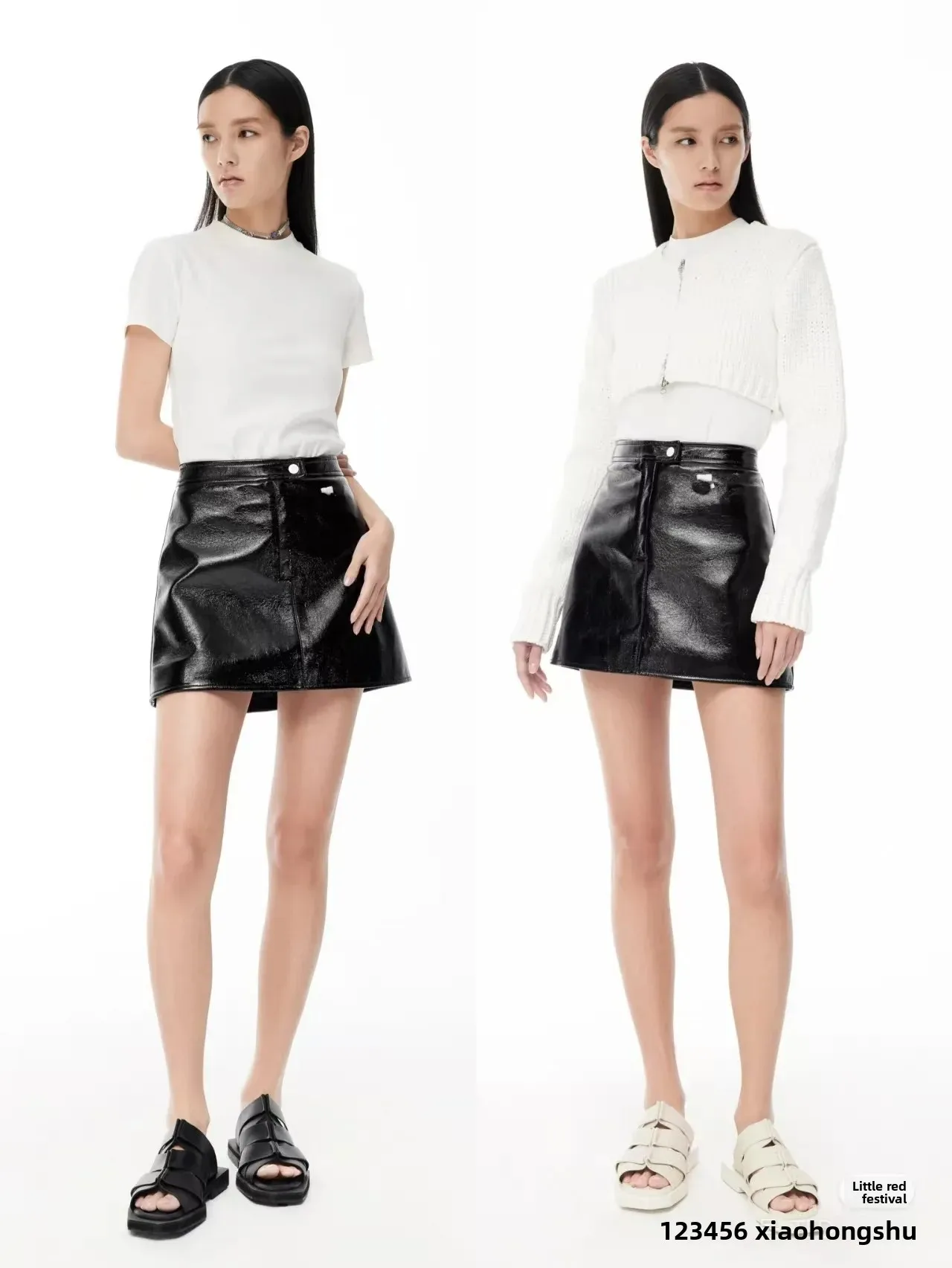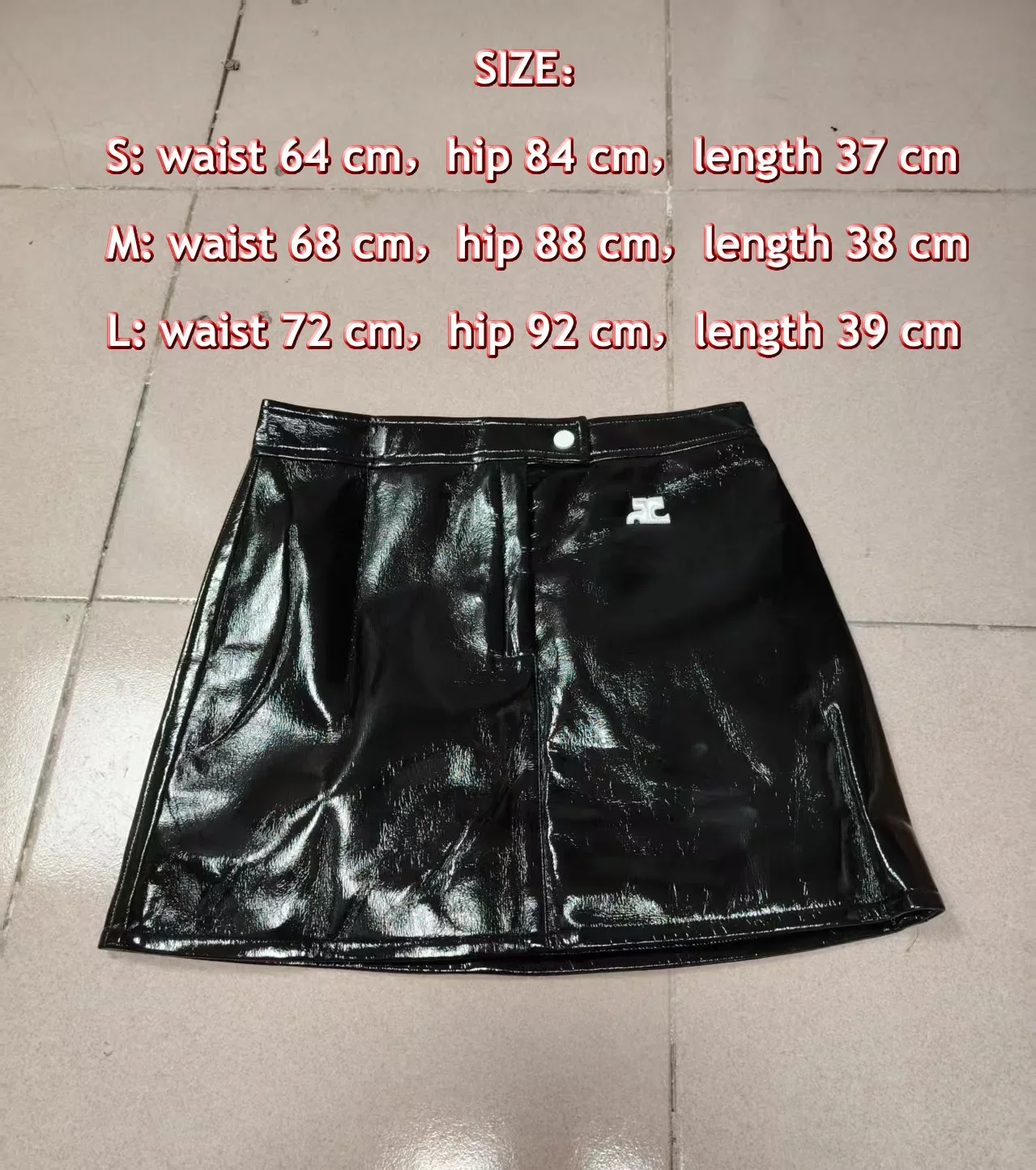 Trendy Luxury French Cou Logo Silhouette PU Leather Jacket Black Wine Red Short Coat Half Skirt Set Women's Fashion Outerwear