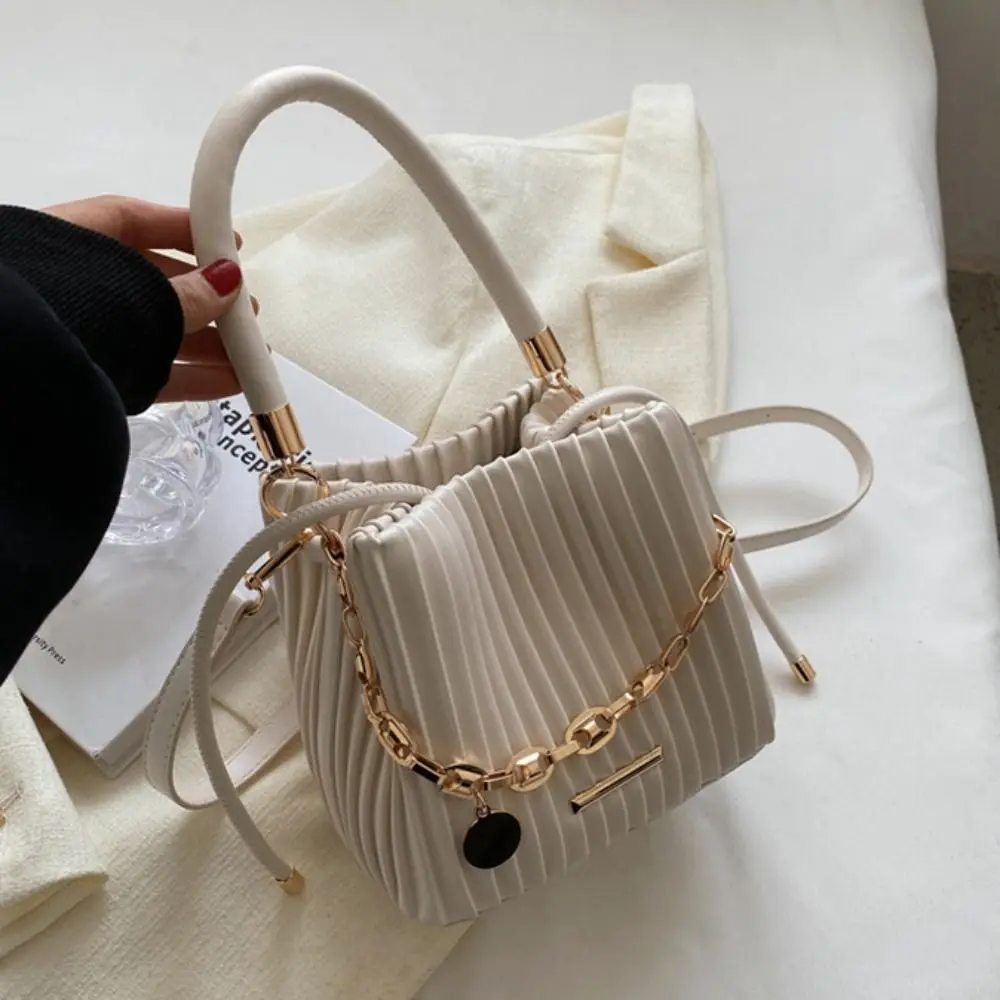 Trendy Pleated Design Crossbody Bag Stylish Chain Shoulder Bucket Bag Elegant Messenger Bag Casual Wear
