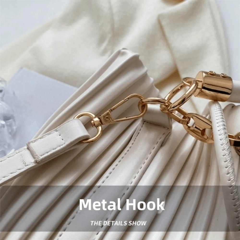 Trendy Pleated Design Crossbody Bag Stylish Chain Shoulder Bucket Bag Elegant Shoulder Purse Daily Use