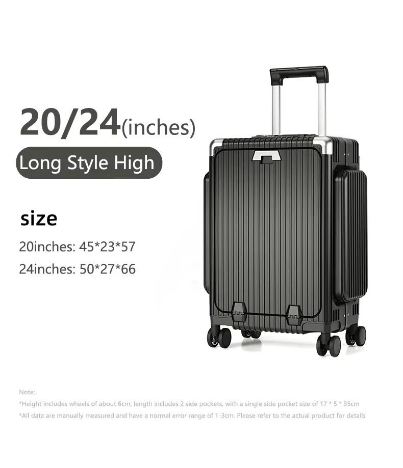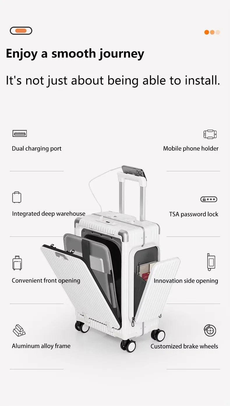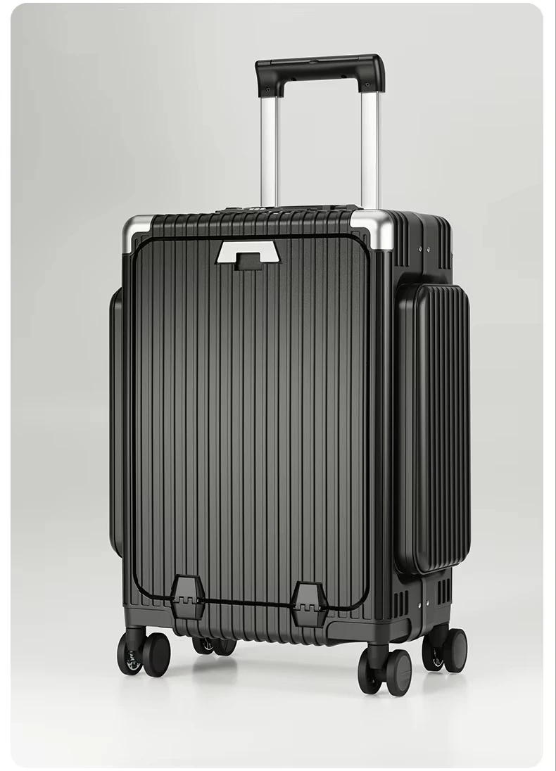 Innovative 3-Zone Access Suitcase: Effortlessly retrieve laptops or passports in seconds via the one-touch button front compartment, Both sides pocket can be divided into smart compartment (for storage earphone,glasses,ipad) and daily ease(for storage keys, lipsticks, passport, umbrella,ect), and backed by a 1:9 deep-expansion main compartment that accommodates tall or bulky belongings vertically, and keeping essentials separate, packing more intelligently.