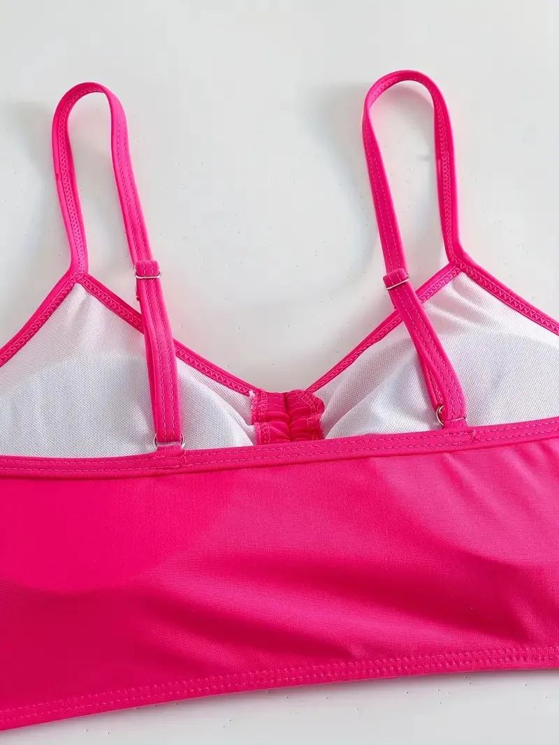 Design: Wireless bra, removable padding, adjustable spaghetti strap, ruched top, drawstring side bottoms