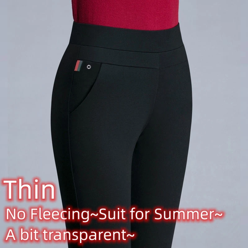 Trousers Fleece Thin Black Formal Woman Clothes Pant Autumn Winter Slim Femal Clothing Elastic Basics Pencil Pants Office Lady
