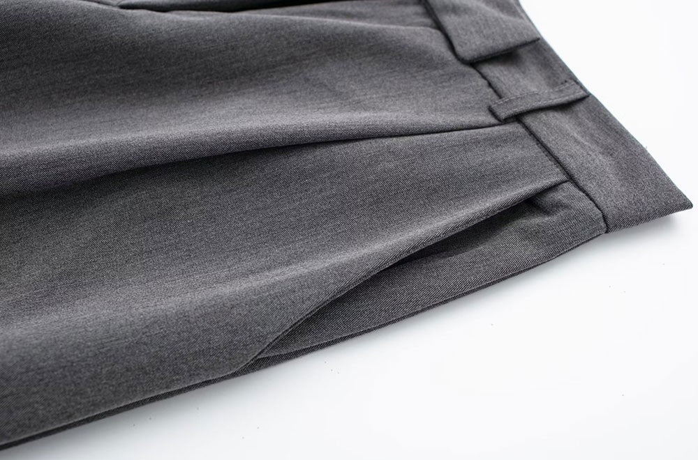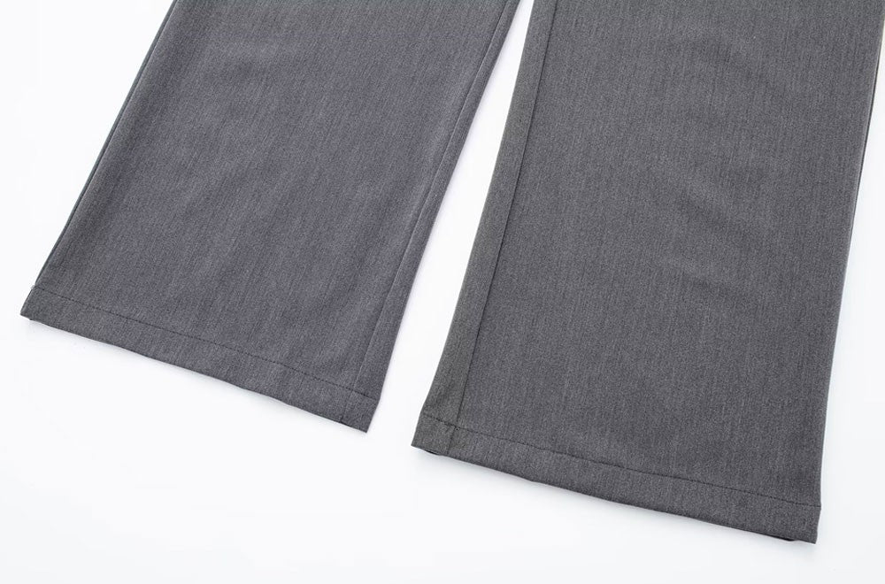 TRZA Women Fashion With Darts Front Pockets Wide Leg Pants Vintage High Waist Zi