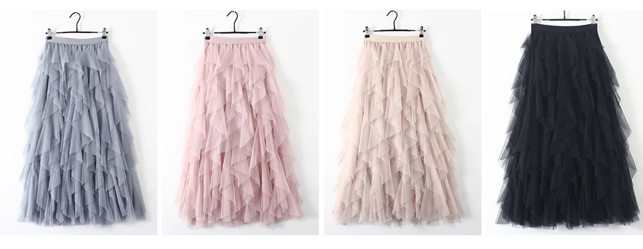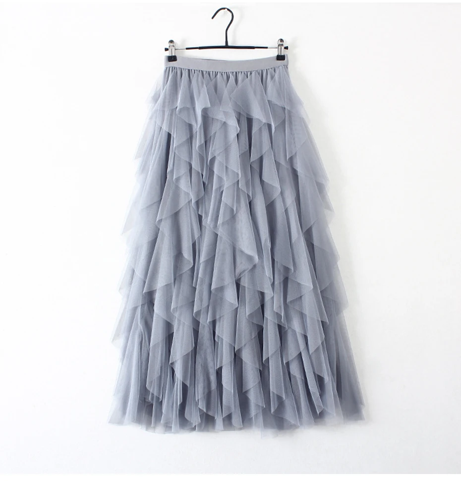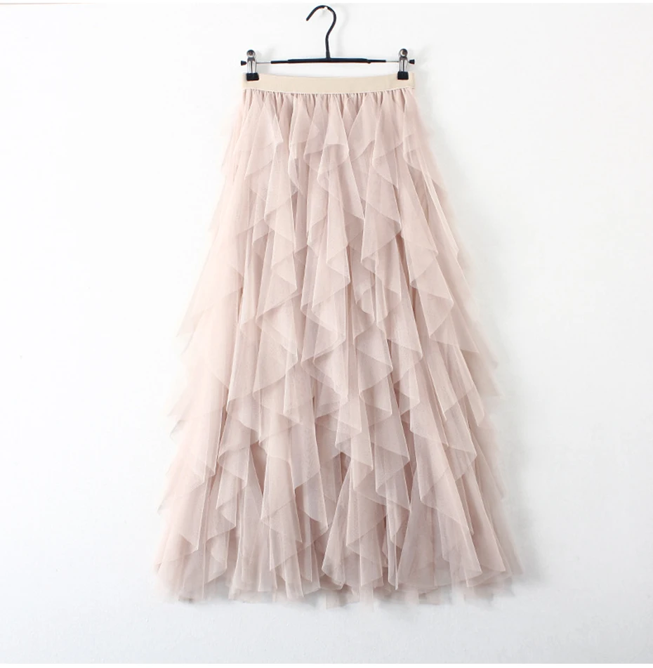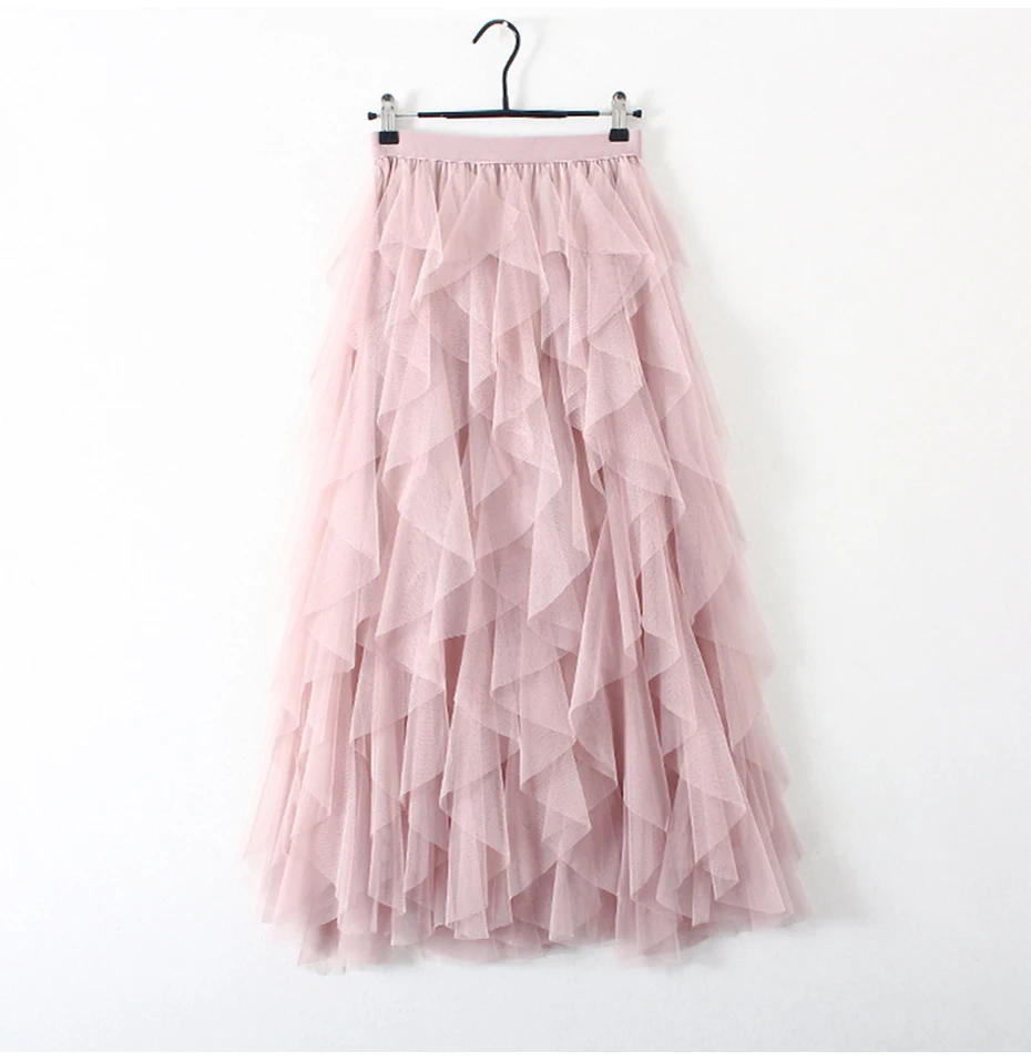 Tutu Tulle Long Maxi Skirt Women Fashion 2022 Korean Cute Pink High Waist Pleated Skirt Mesh Female Lady Aesthetic Faldas