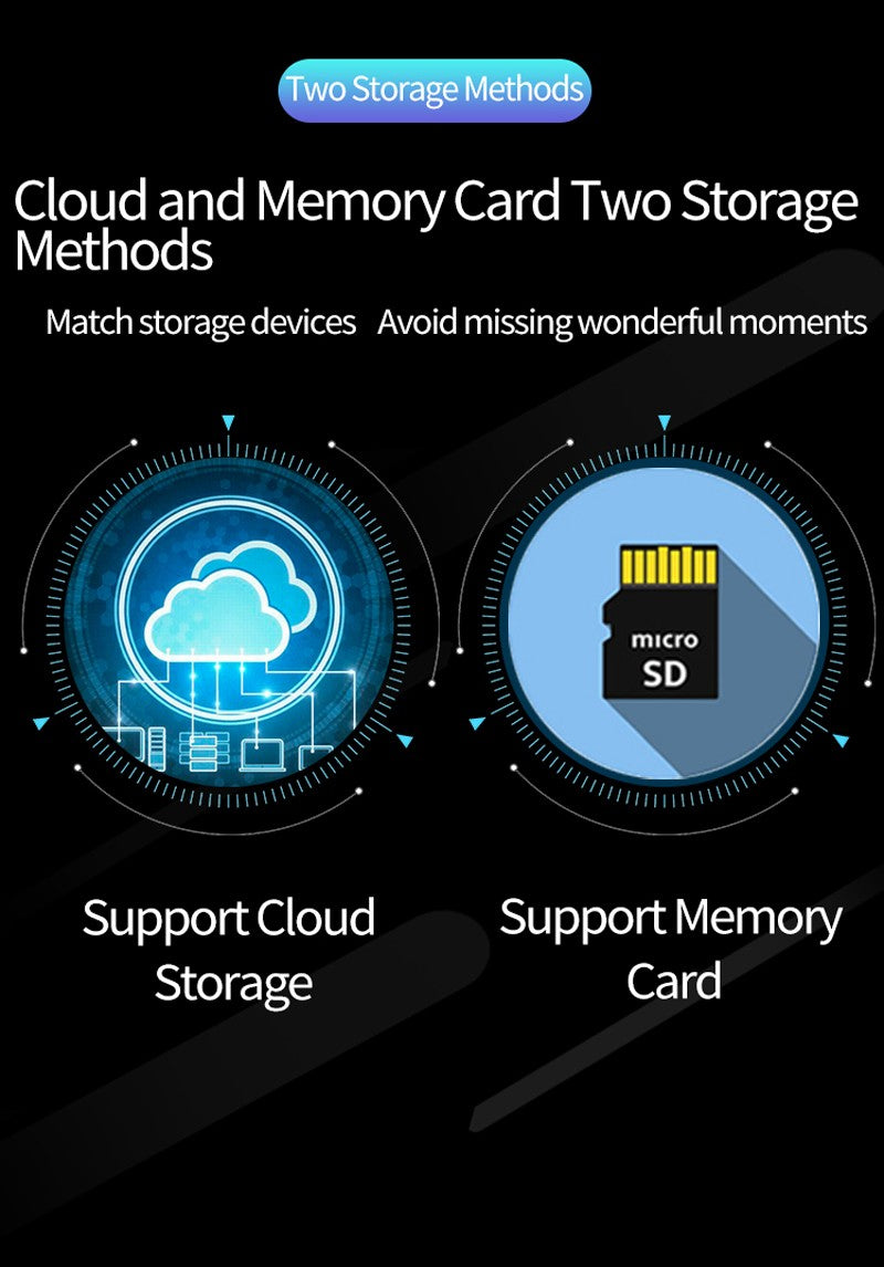 The camera supports up to 128GB TF card local backup,Support for recording video and sound via a Micro SD card or computer, you can remotely play back video and sound (history) via the mobile app.