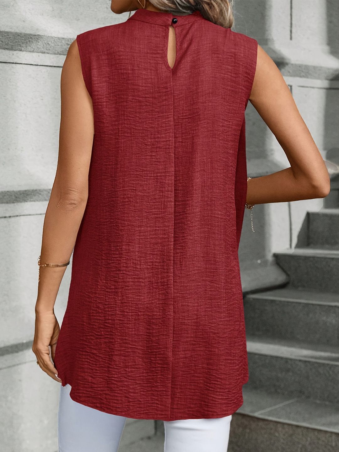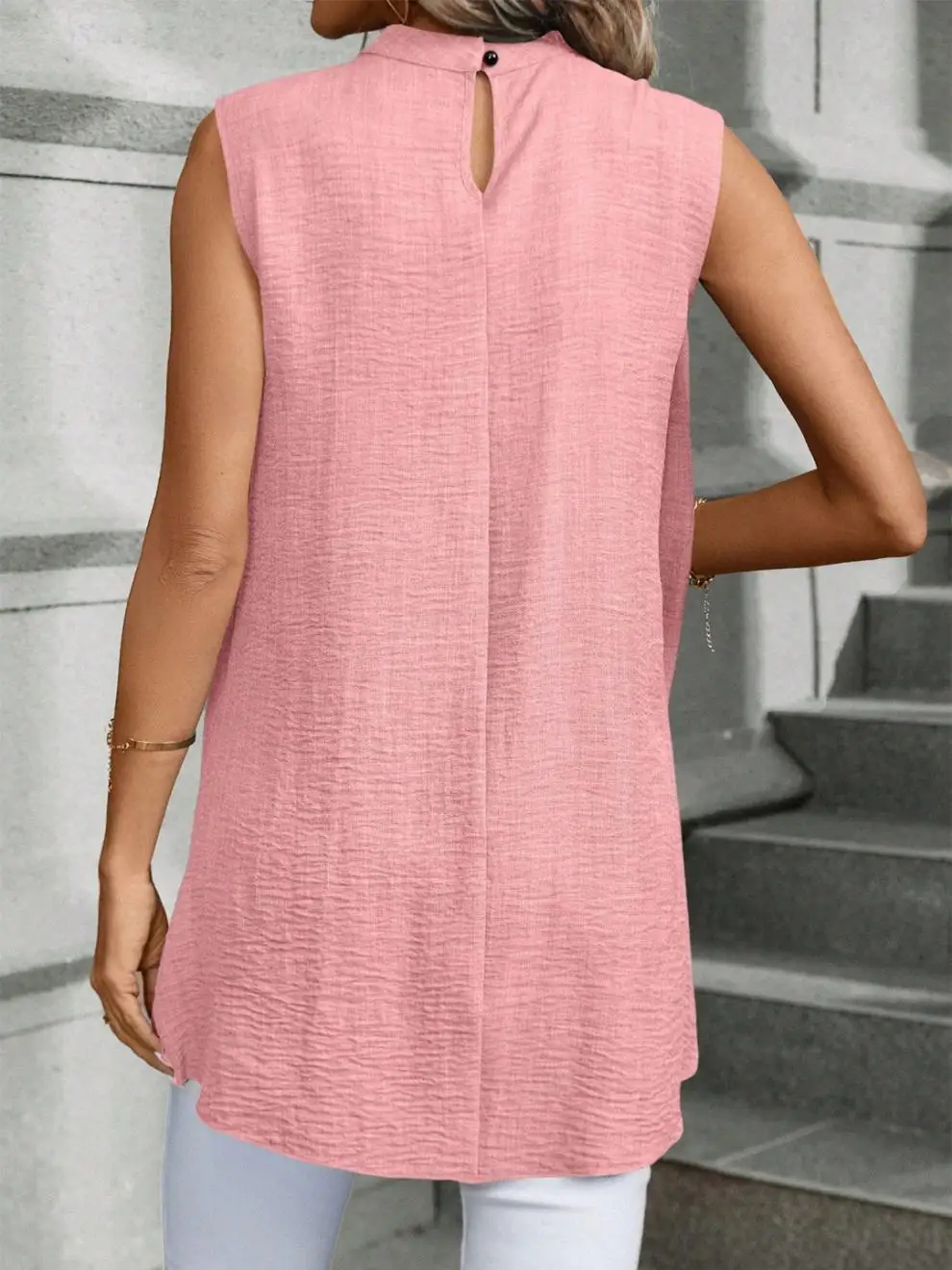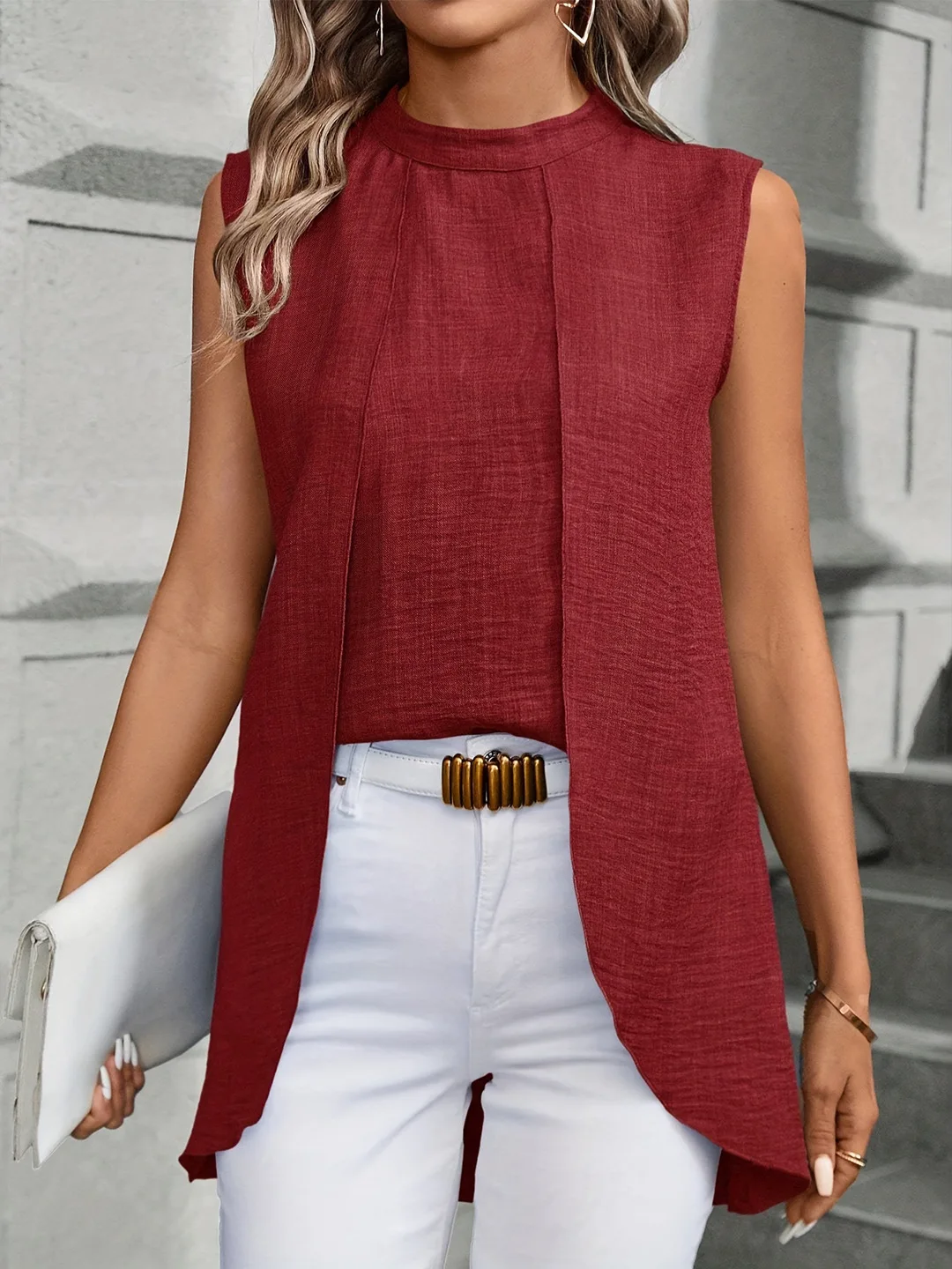 Two Fake Pieces Shirts For Women 2024 Fashion O-neck Sleeveless Shirt Tops Summer Elegant Solid Blouse Top Femme Black