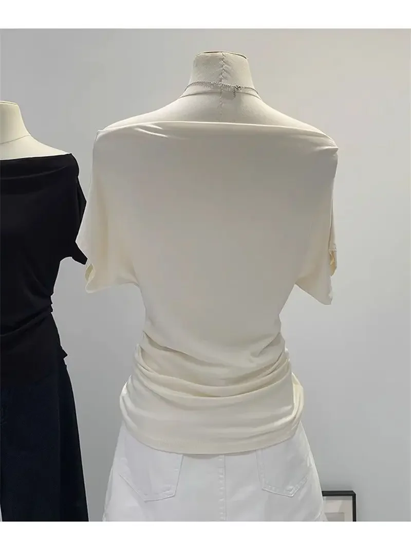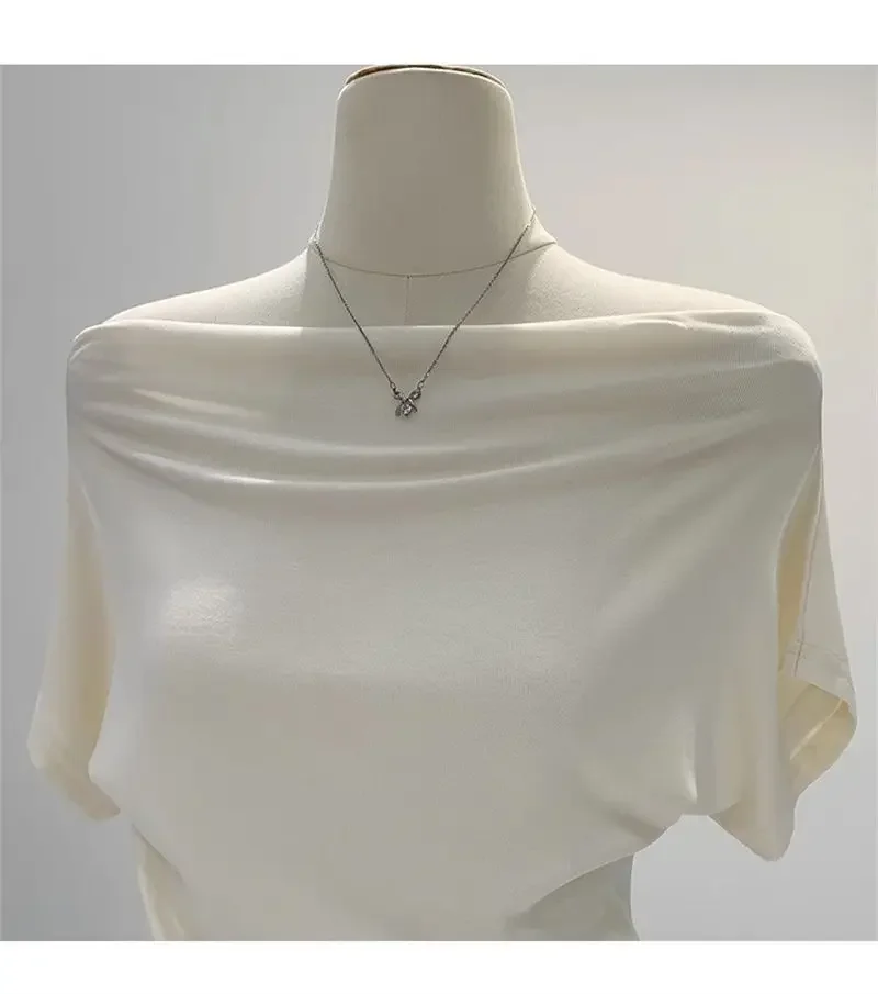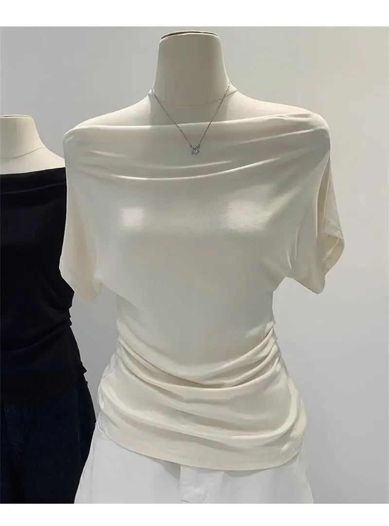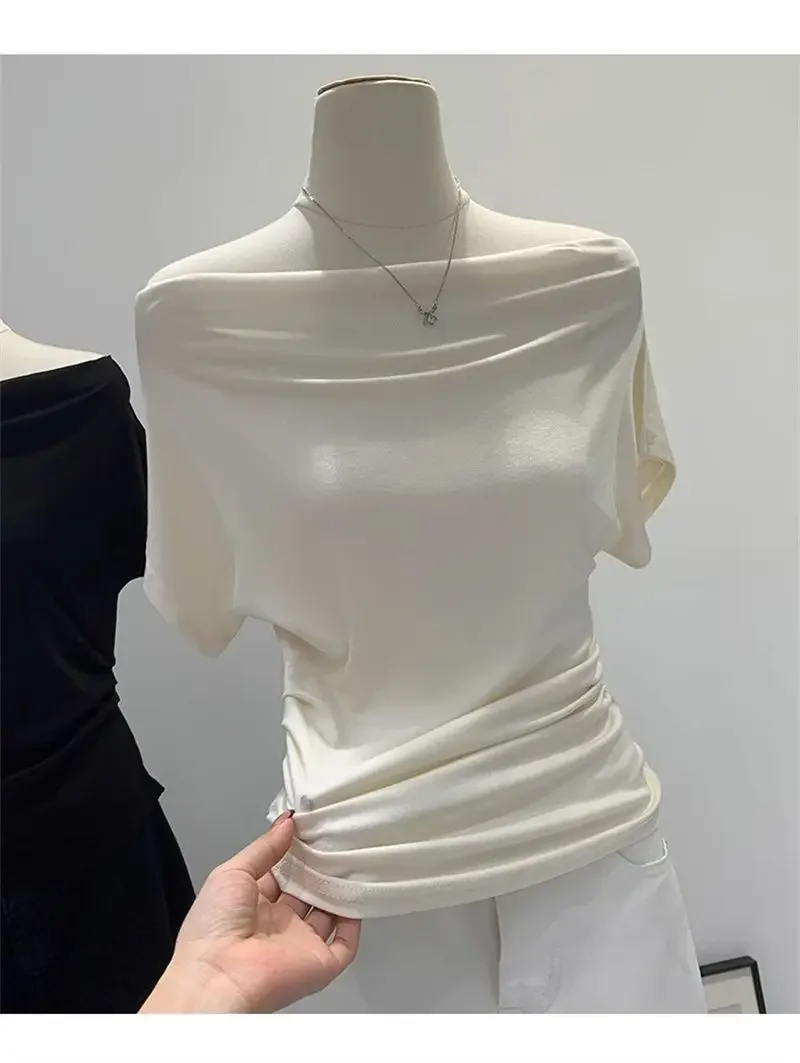 Ultra-Hand Feel Modal Cotton Short Sleeve T-Shirt Women Summer Design Slim Fit Shoulder Baring Fashionable Top