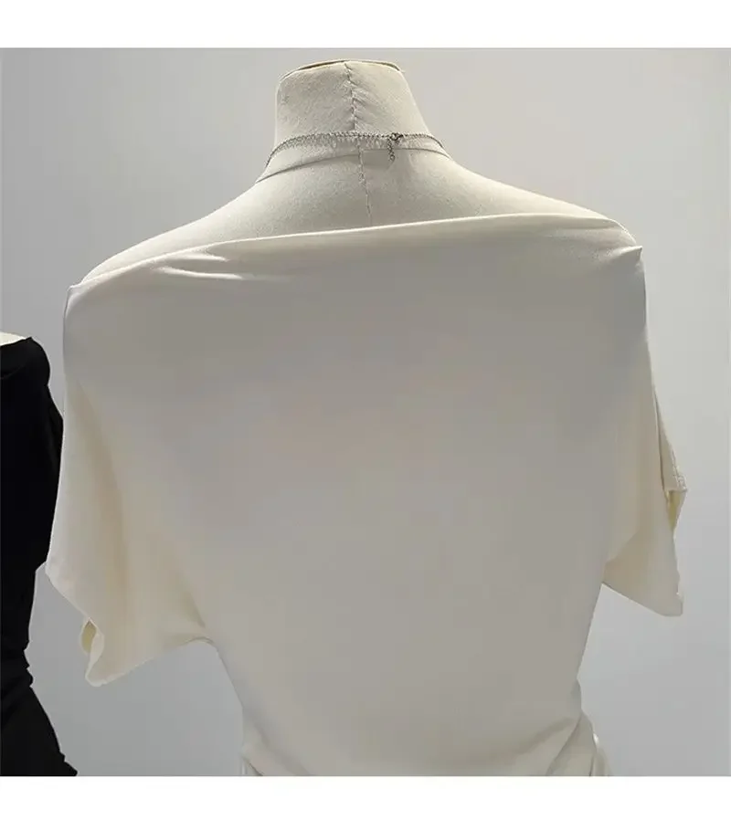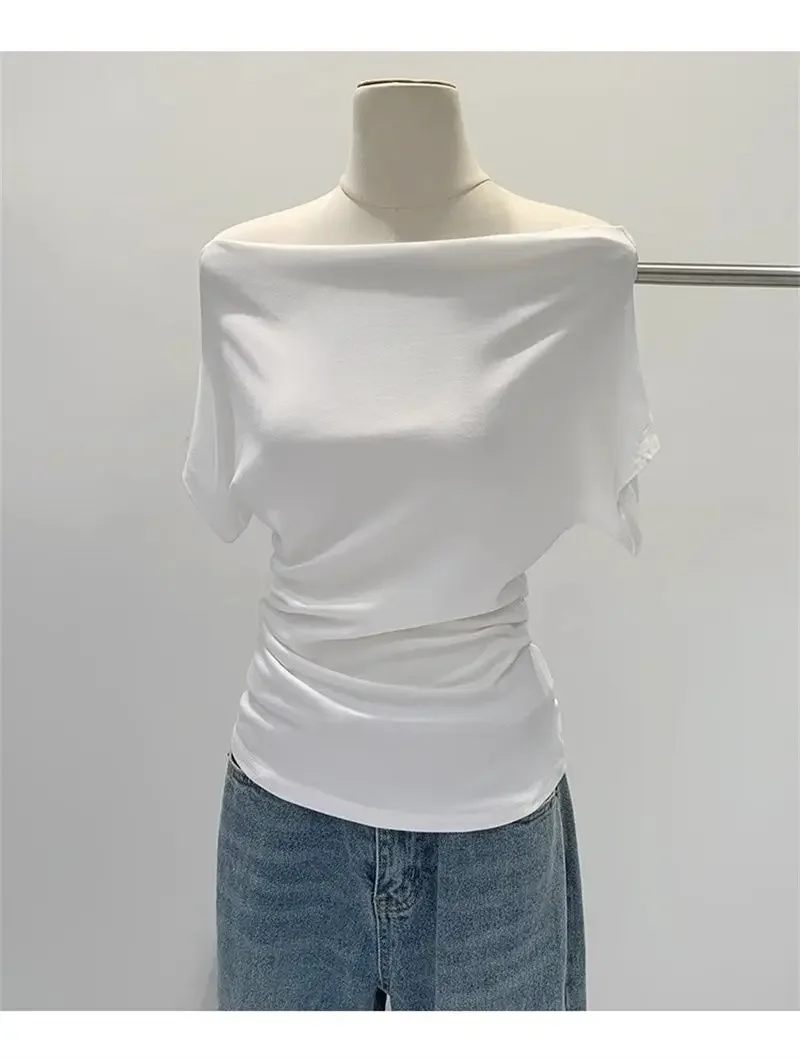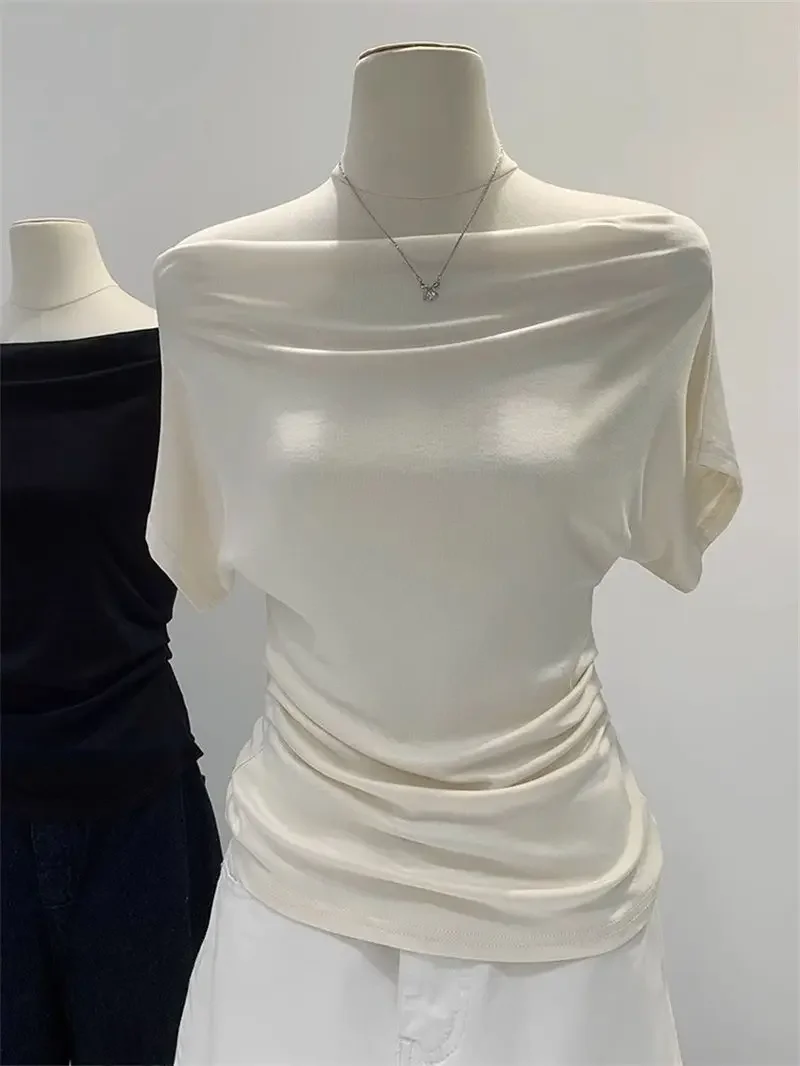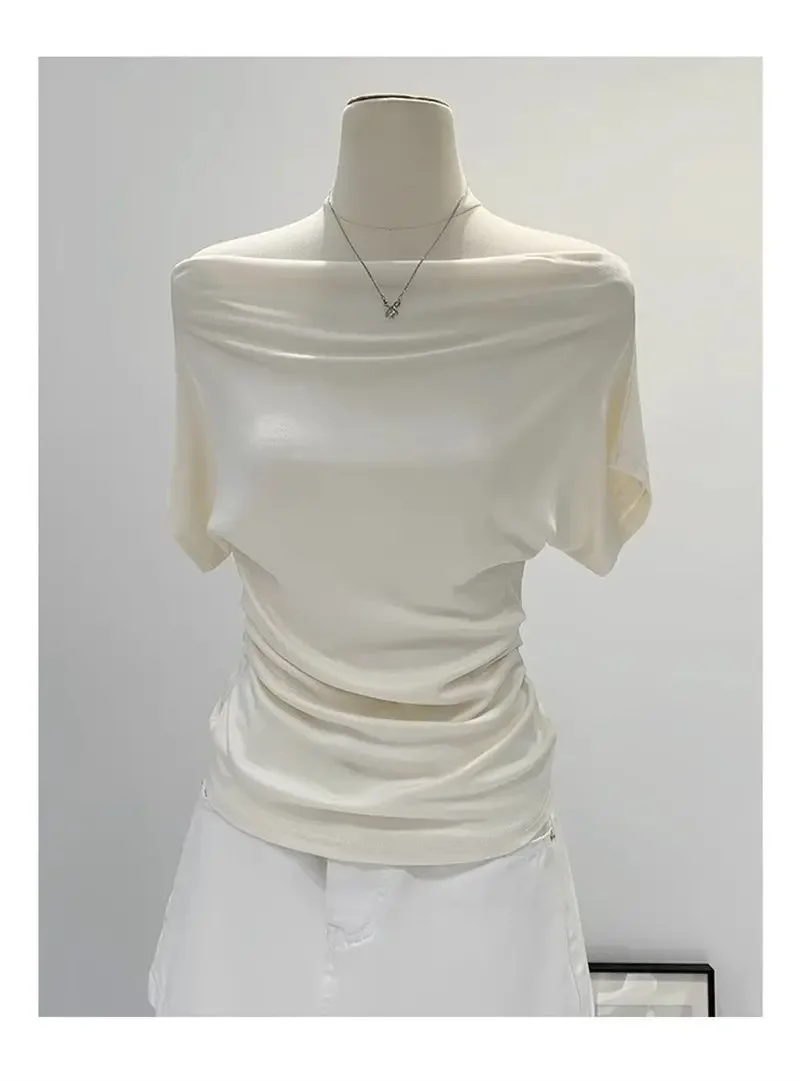 Ultra-Hand Feel Modal Cotton Short Sleeve T-Shirt Women Summer Design Slim Fit Shoulder Baring Fashionable Top