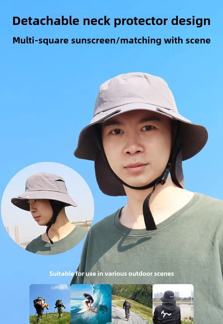 UPF50+ Men Surfing Hat Wide-brimmed Surf Cap Men Hat Breathable Brim Sunshade Quick-drying Beach Cool Cap Windproof Bucket Hat