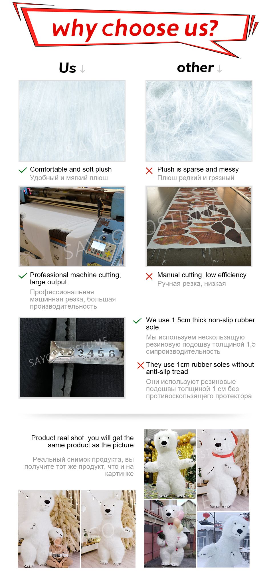 US stock Inflatable Polar Bear Costume Mascot for Advertising Christmas Halloween Adult Fursuit Panda Gorilla Carnival Suit