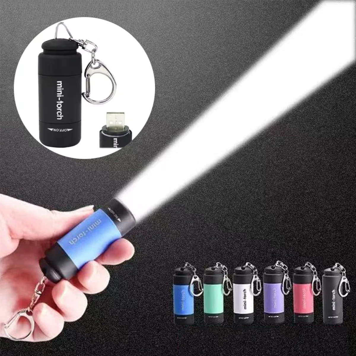 USB Rechargeable LED Multifunctional Strong Light Pocket Keychain Flashlight Waterproof Outdoor Hiking Camping Mini Flashlight