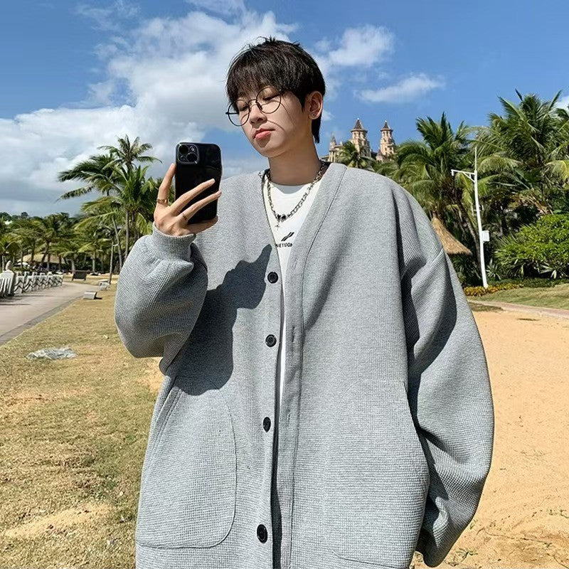 V-neck Knitted Jacket for Men 2025 New Autumn Jacket Trendy Brand Relaxed Style