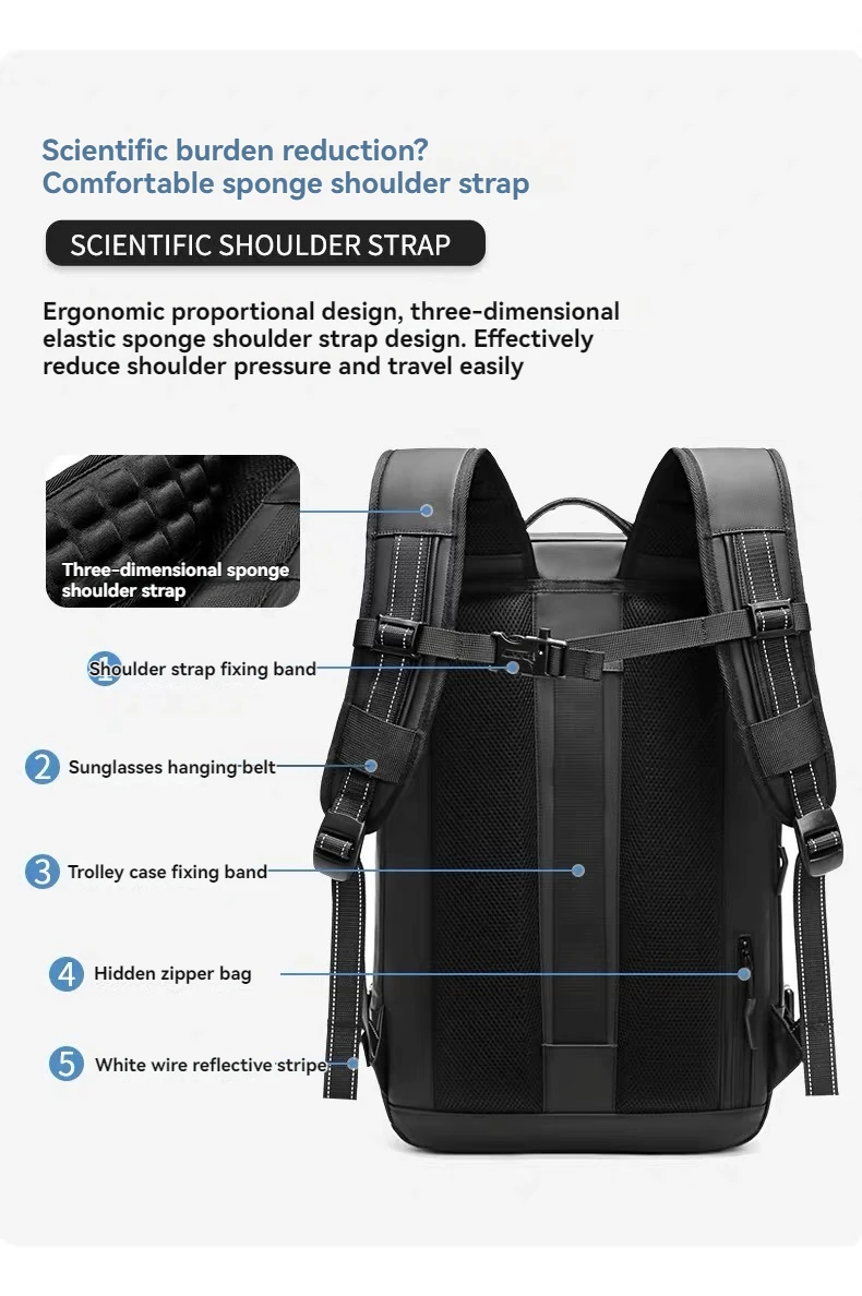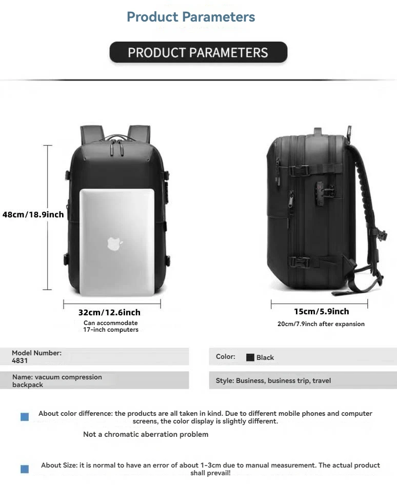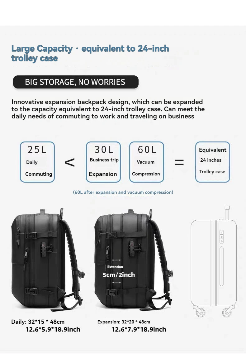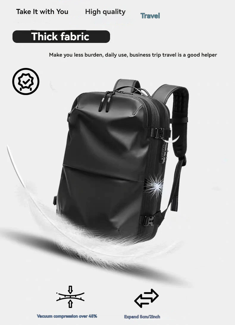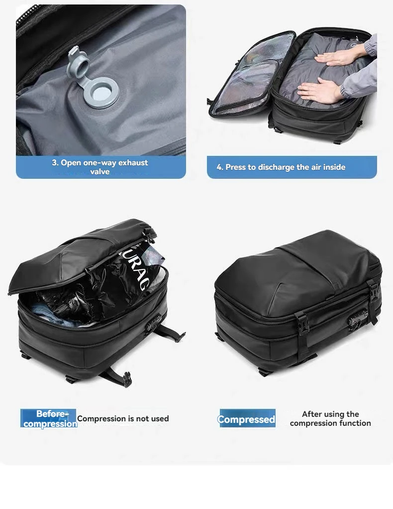 Vacuum sealed travel backpack, expandable air compression system waterproof TSA lock, travel backpack