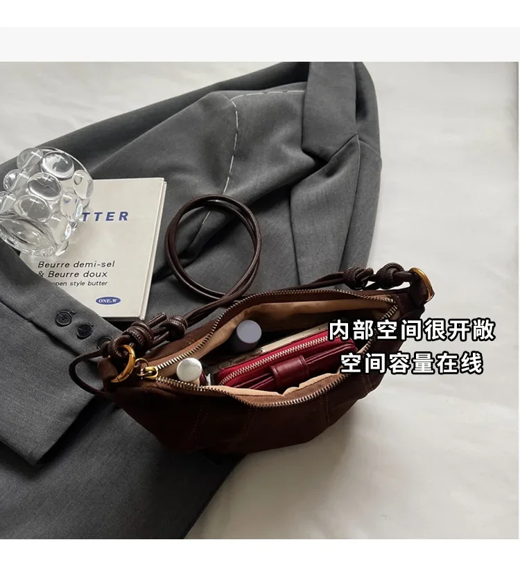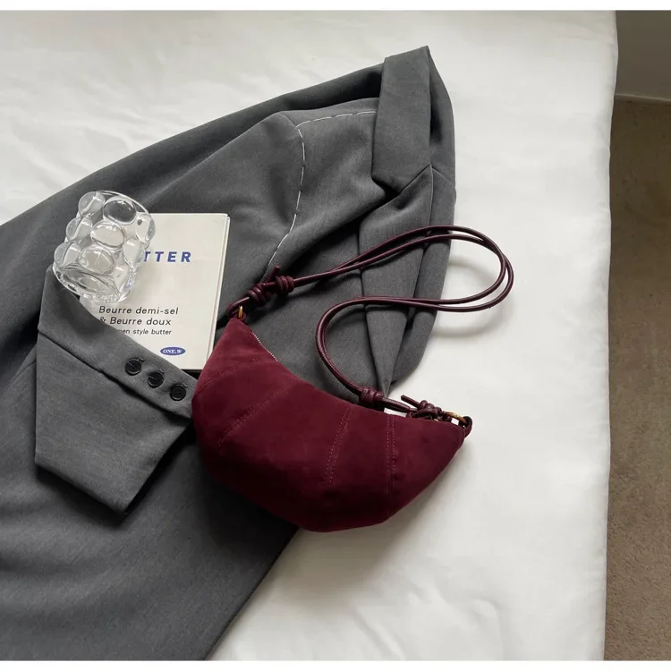 Velvet Material 2025 High Quality Zipper Shoulder Bag Solid Color Simple Fashionable Crossbody Bag Soft Western Style Handbag