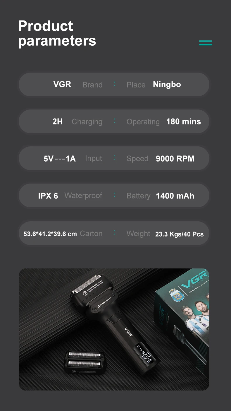 ? Smart Battery Management (LED Display + Long Battery Life):The LED digital battery indicator shows real-time charge levels, while 2 hours of charge provides 180 minutes of runtime (3-hour shaving time)—perfect for daily use and travel.