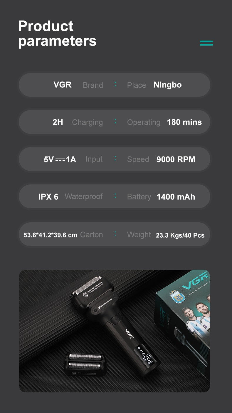 VGR Shaver Professional Beard Trimmer Waterproof Razor 9000 RPM Electric Shaving Machine Reciprocating LED Shaver for Men V-368