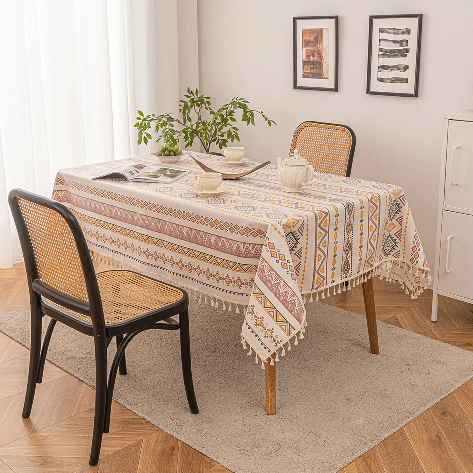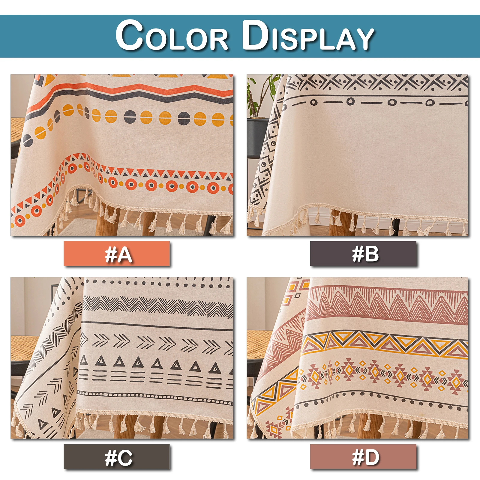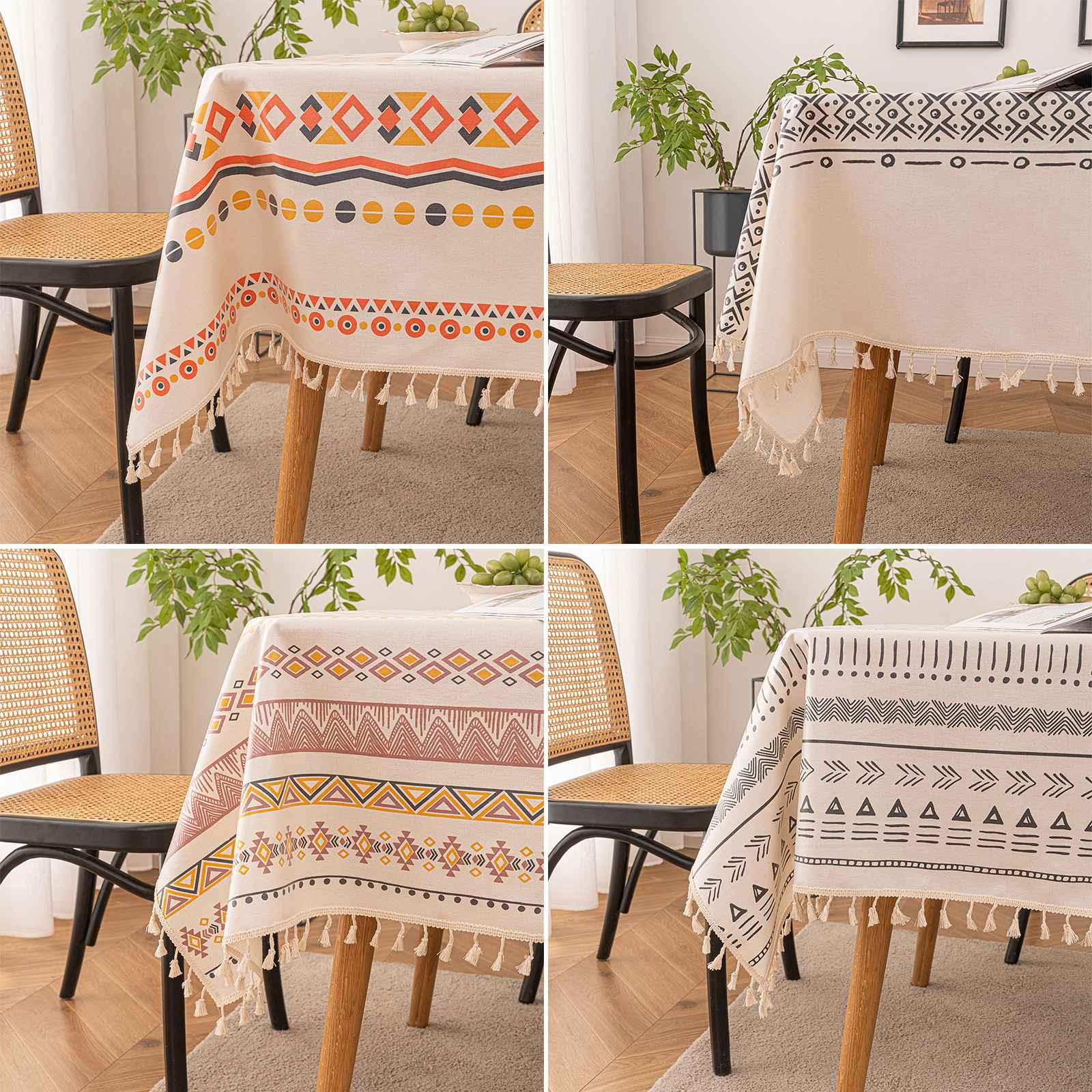 Vintage Boho Tassel Table Cloth Waterproof Cotton Linen Bohemian Tablecloth Patio Outdoor Wrinkle Free Table Protector Covers
