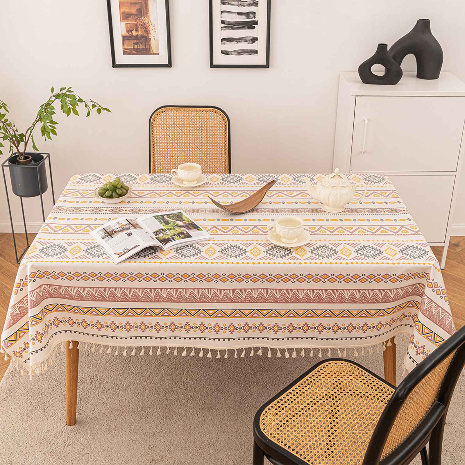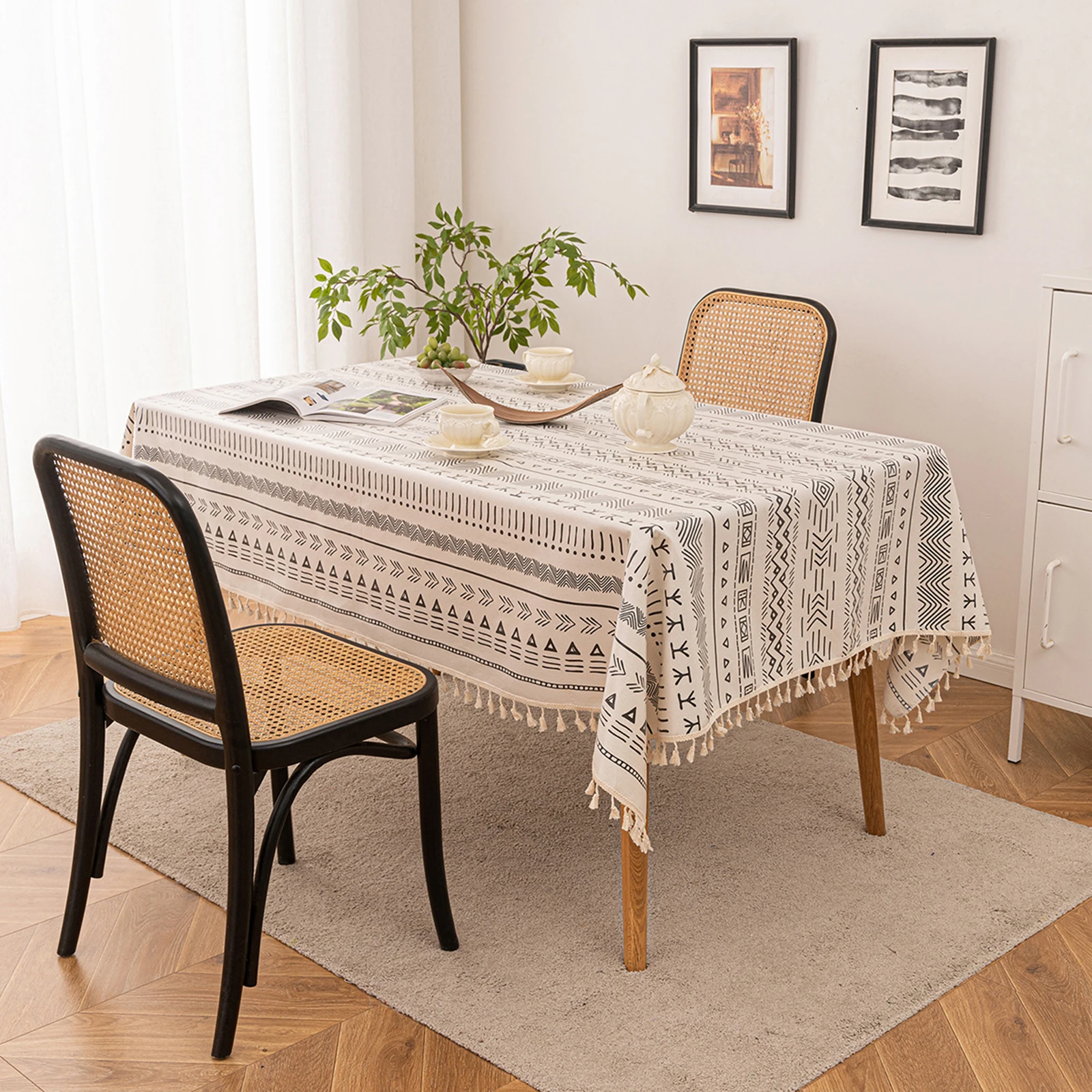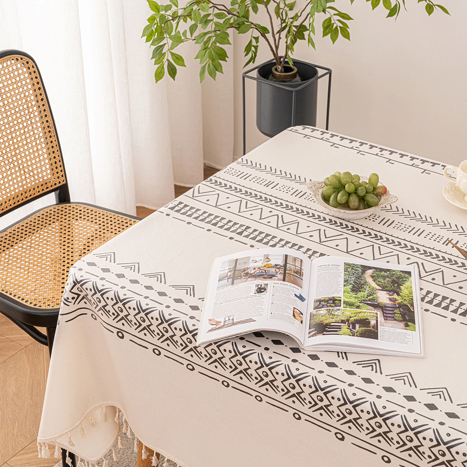 Vintage Boho Tassel Table Cloth Waterproof Cotton Linen Bohemian Tablecloth Patio Outdoor Wrinkle Free Table Protector Covers