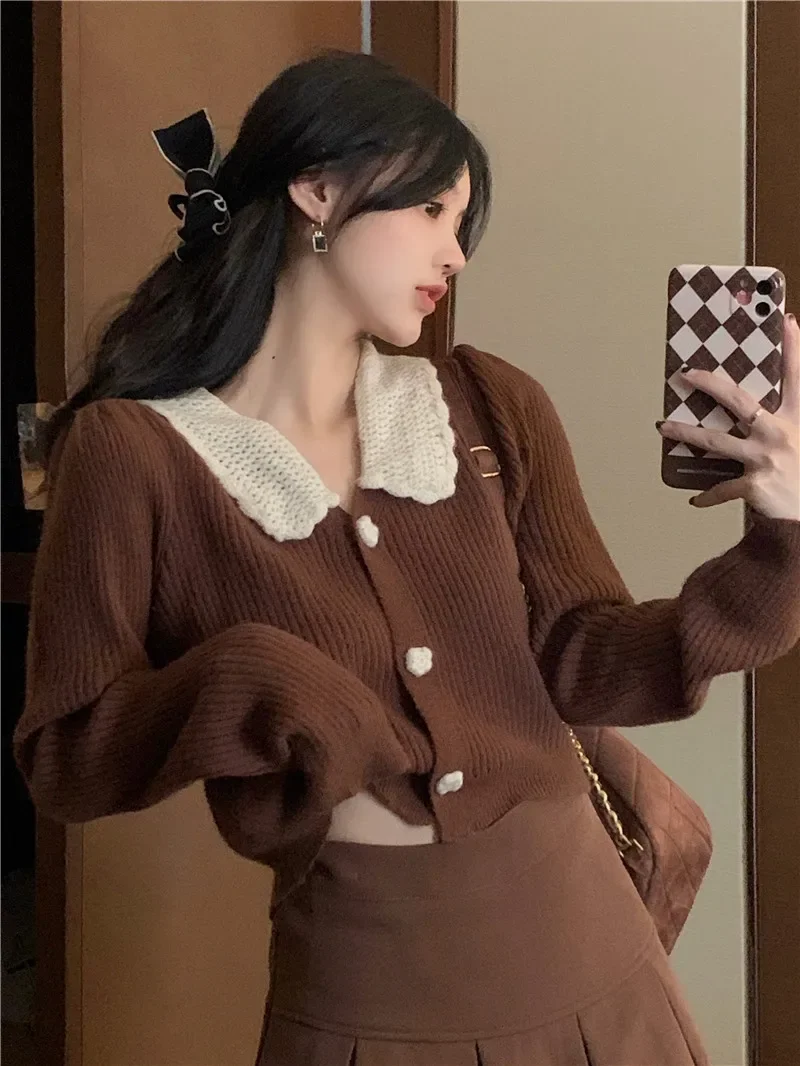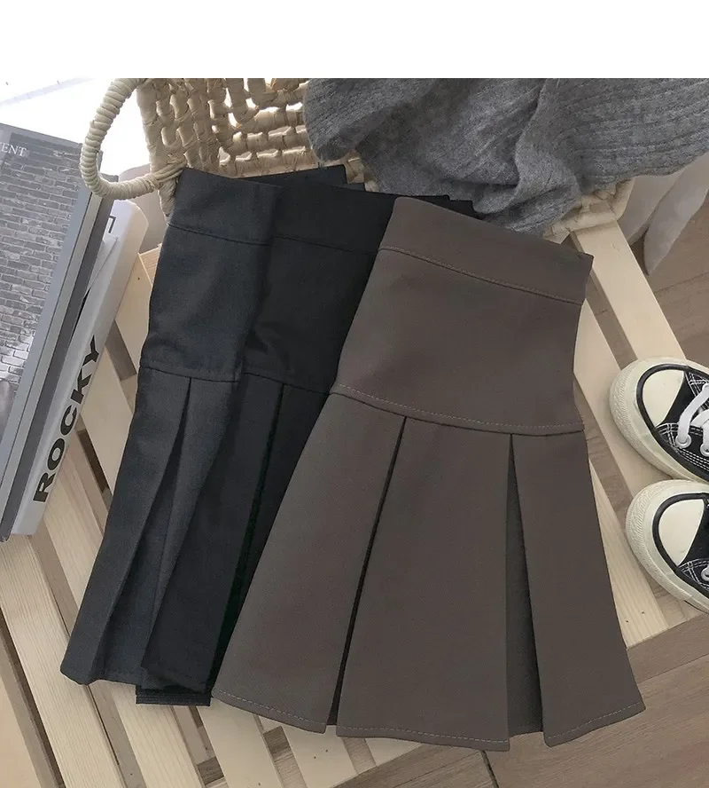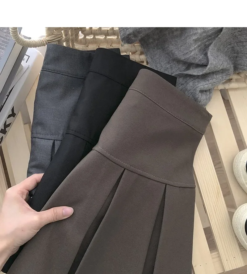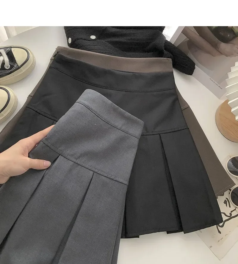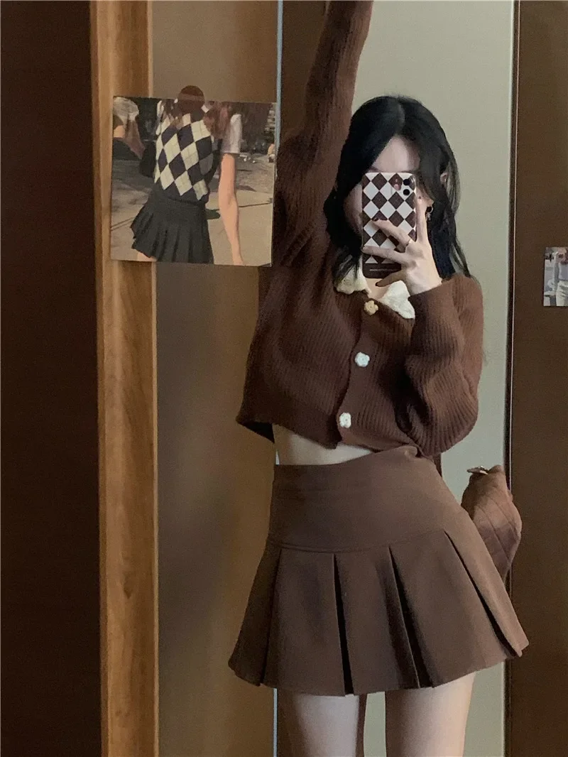 Vintage Brown Pleated Skirt Women Spring Summer Korean Style Y2K High Waisted A-line Mini Skirts Preppy Style Girls Causal