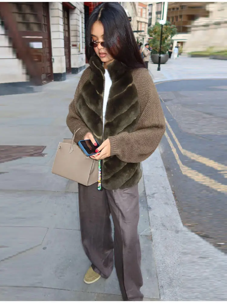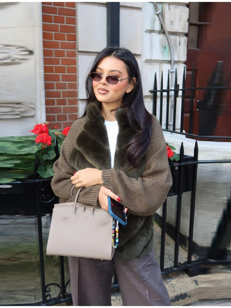 Vintage Faux Fur patchwork Jacket For Women Fashion Design Sense Long Sleeves Casual Coat 2025 Autumn Winter Female Streetwear
