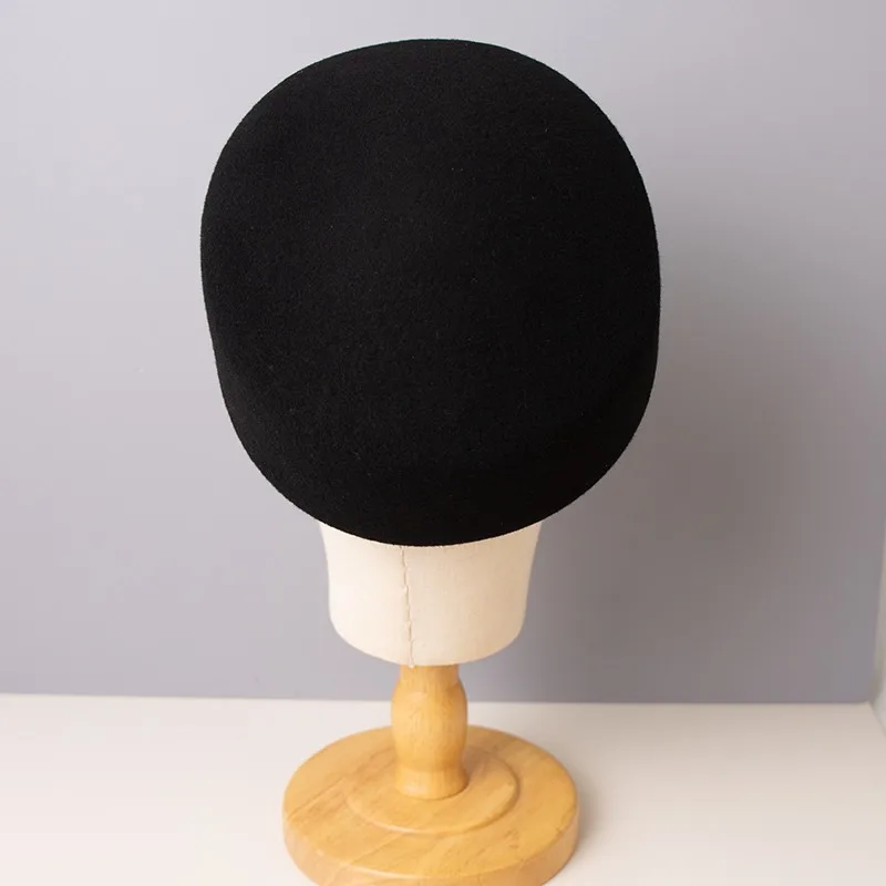 Vintage Hard Top Flat Fedoras Hats Women 100% Wool Felt Berets Hat Wedding Fascinator Caps Wedding Cocktail Party Pillbox Hat