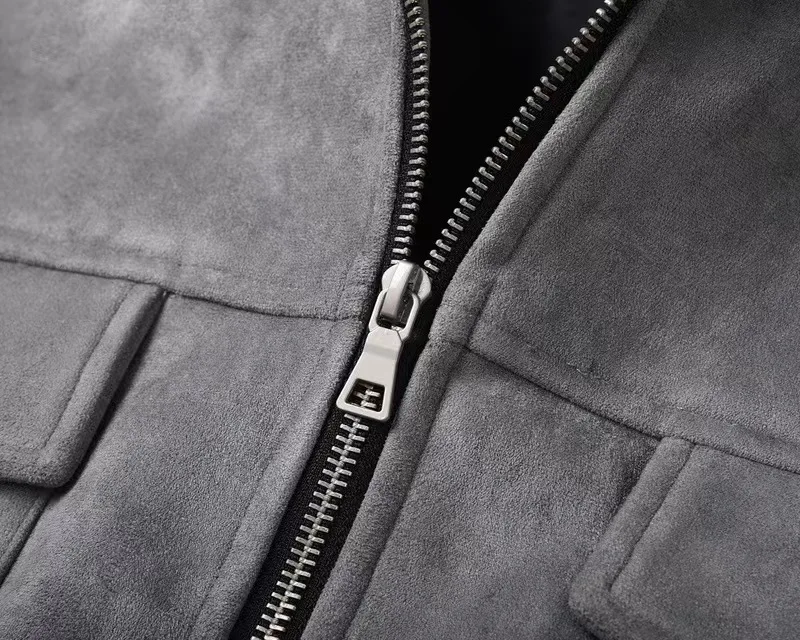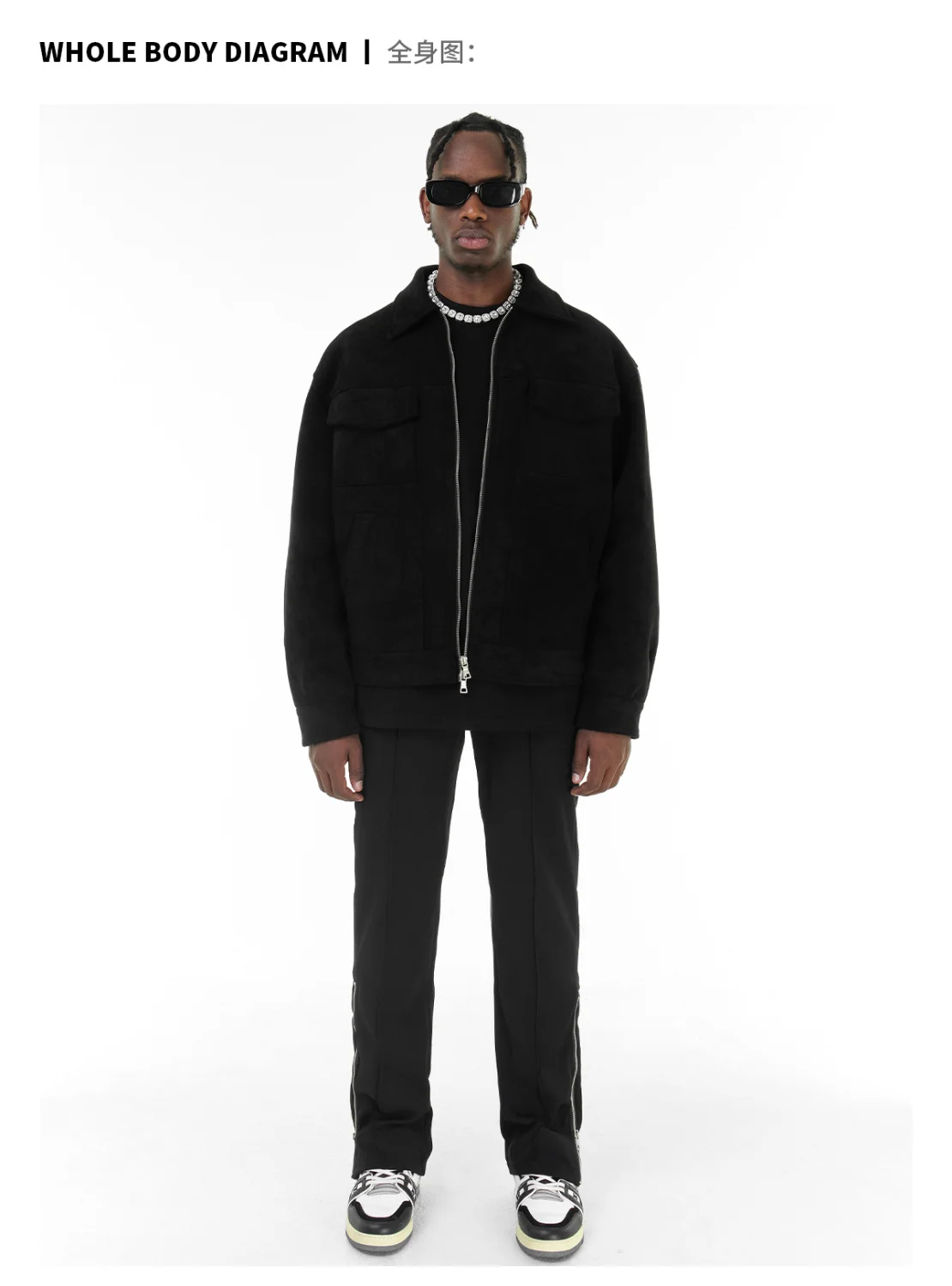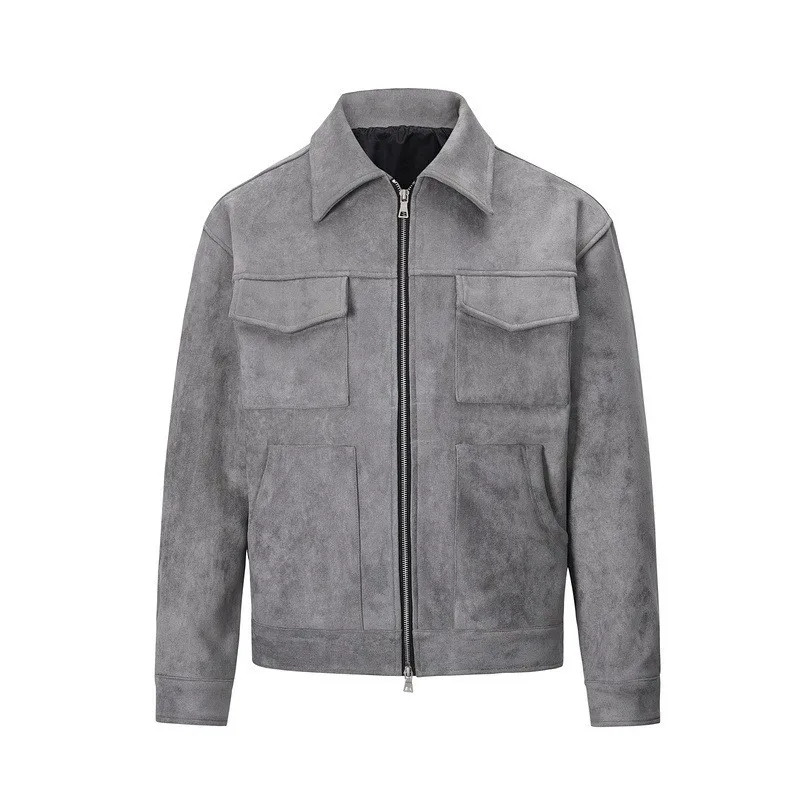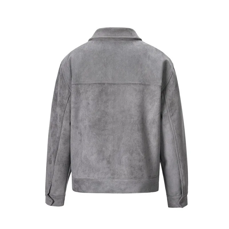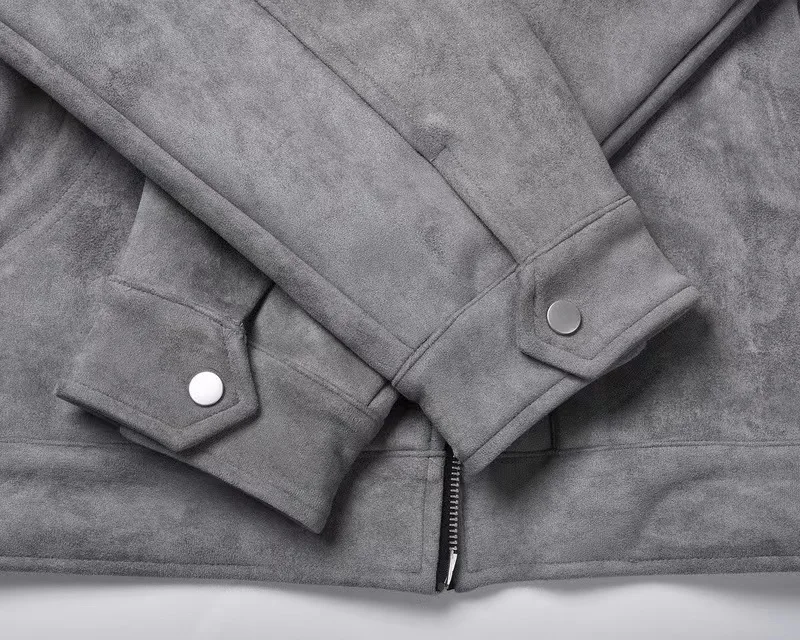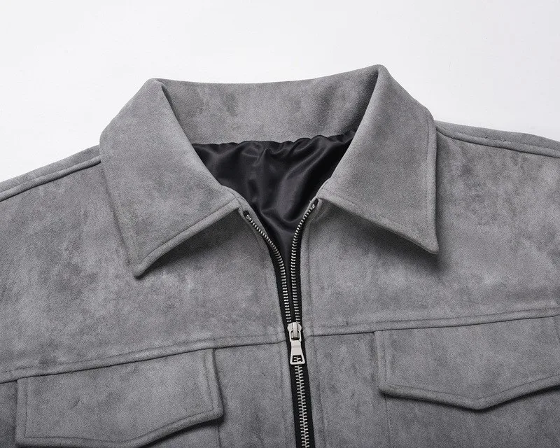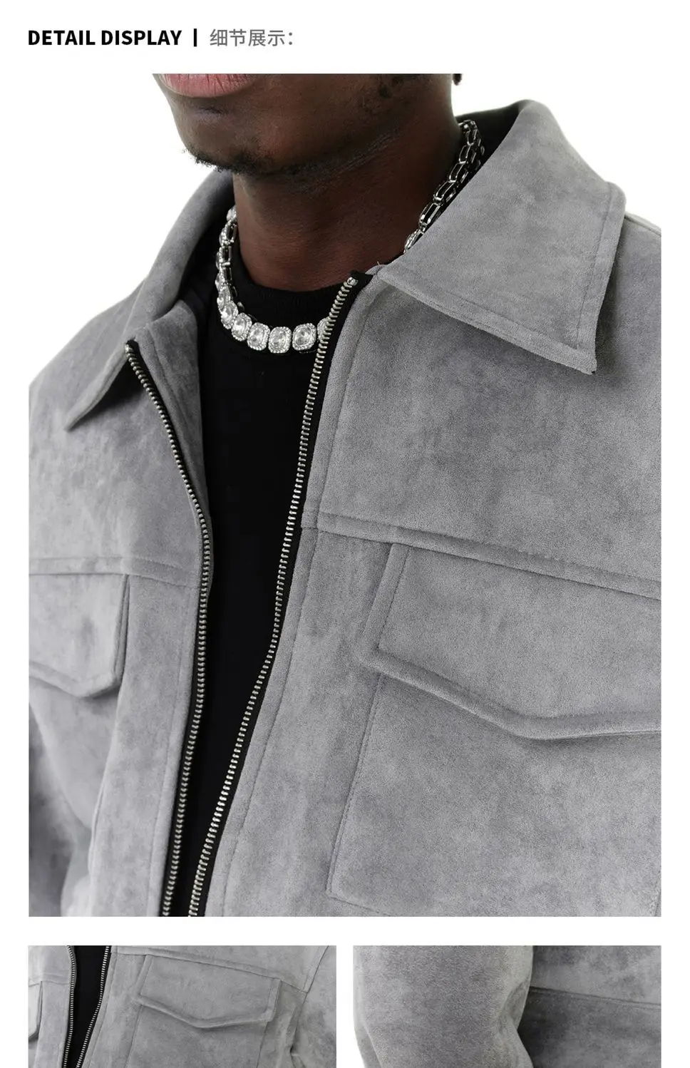Vintage High Street Suede Material Crock Jacket With Zipper Lapel Casual Short Jacket For Men