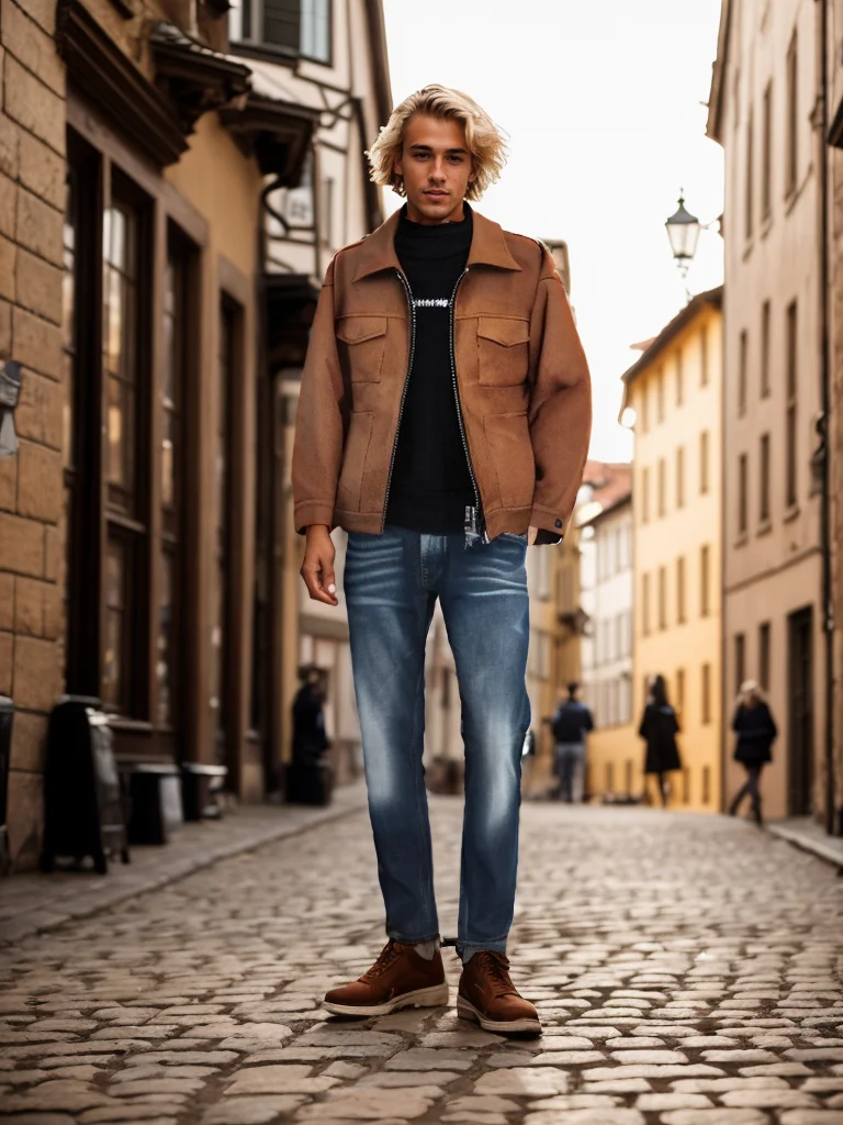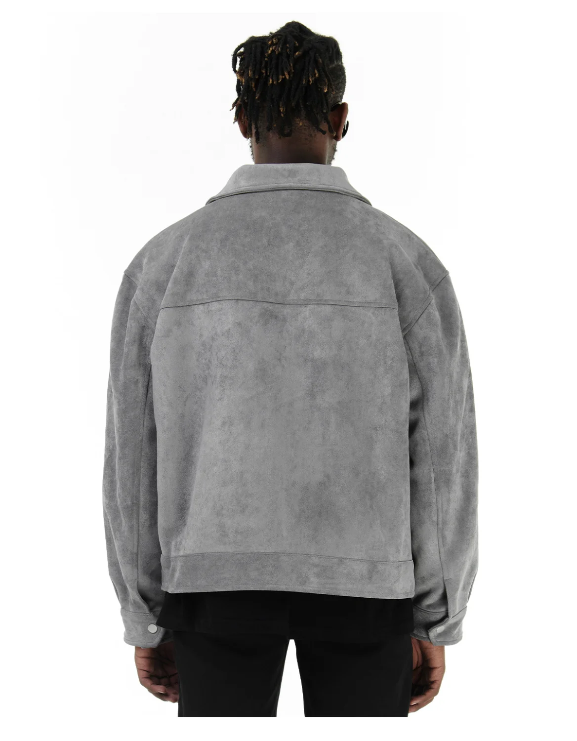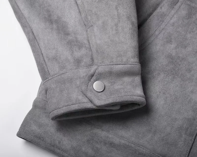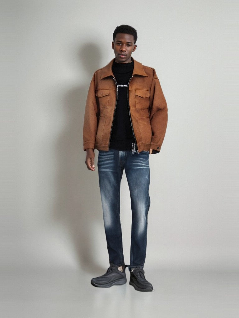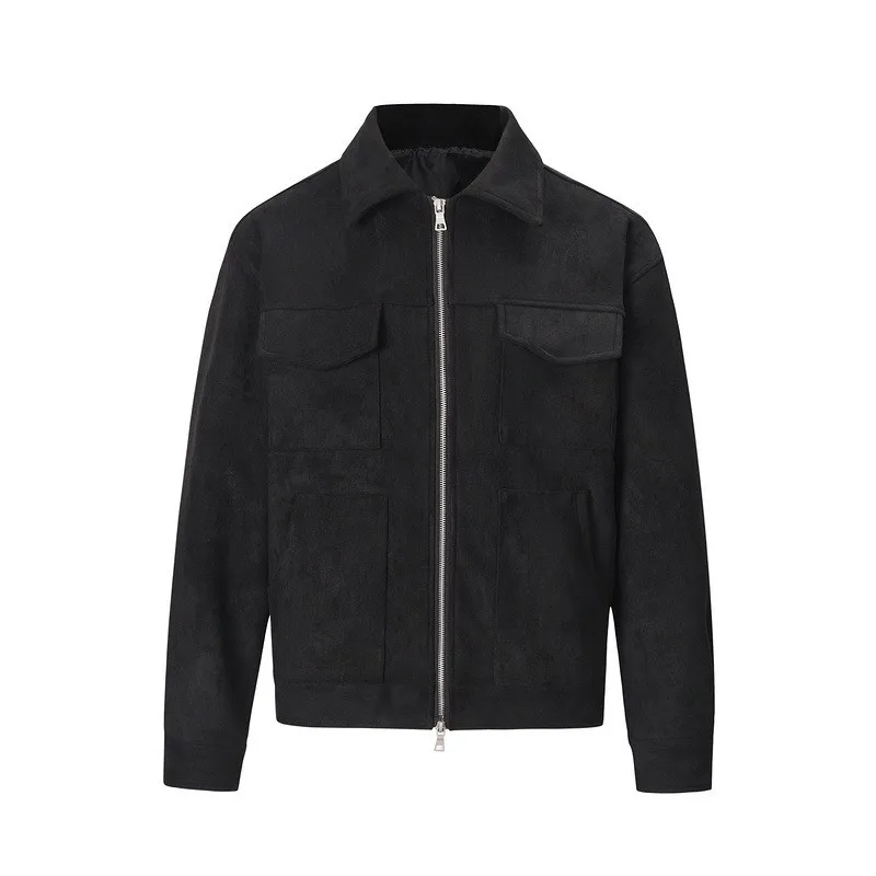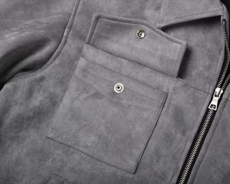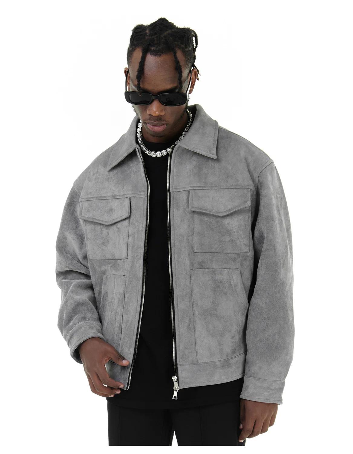 Vintage High Street Suede Material Crock Jacket With Zipper Lapel Casual Short Jacket For Men