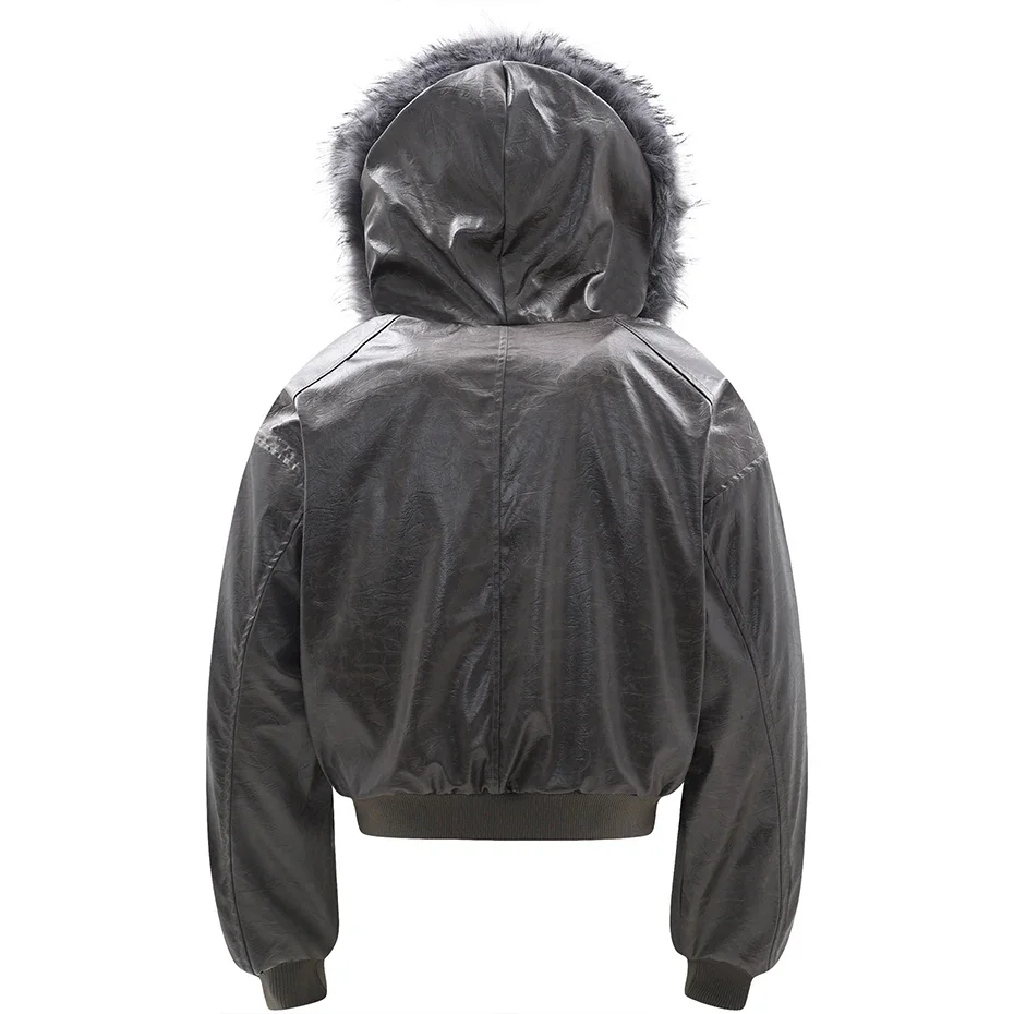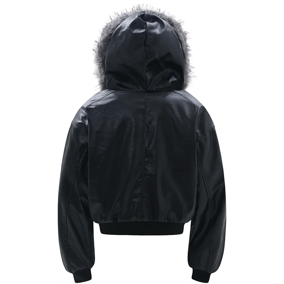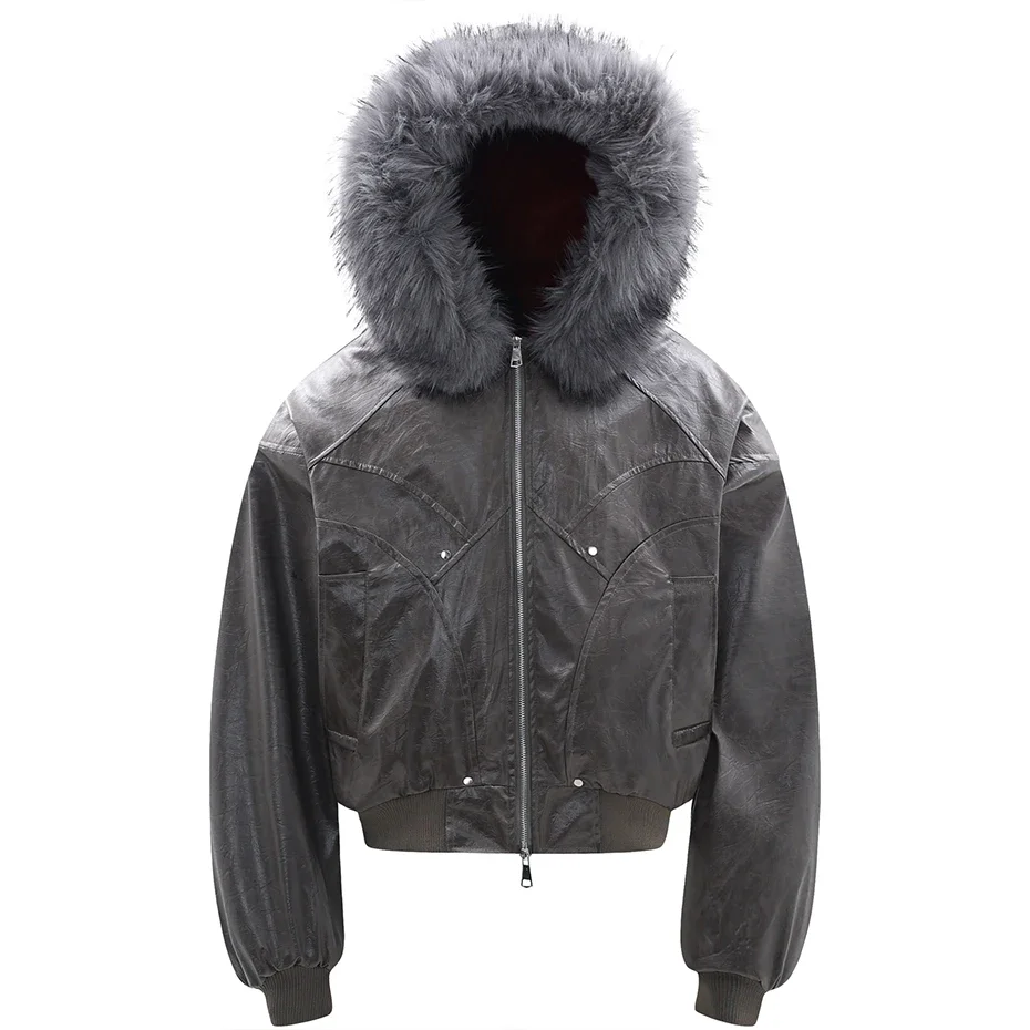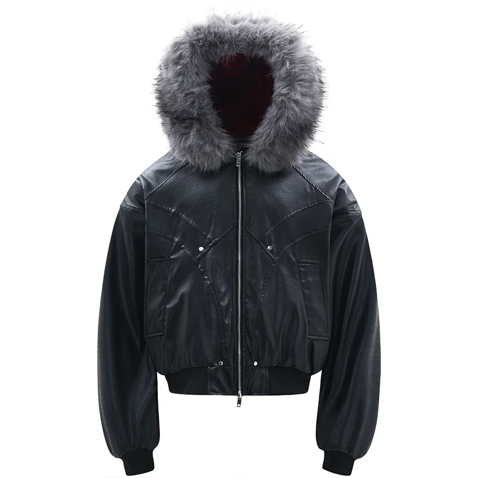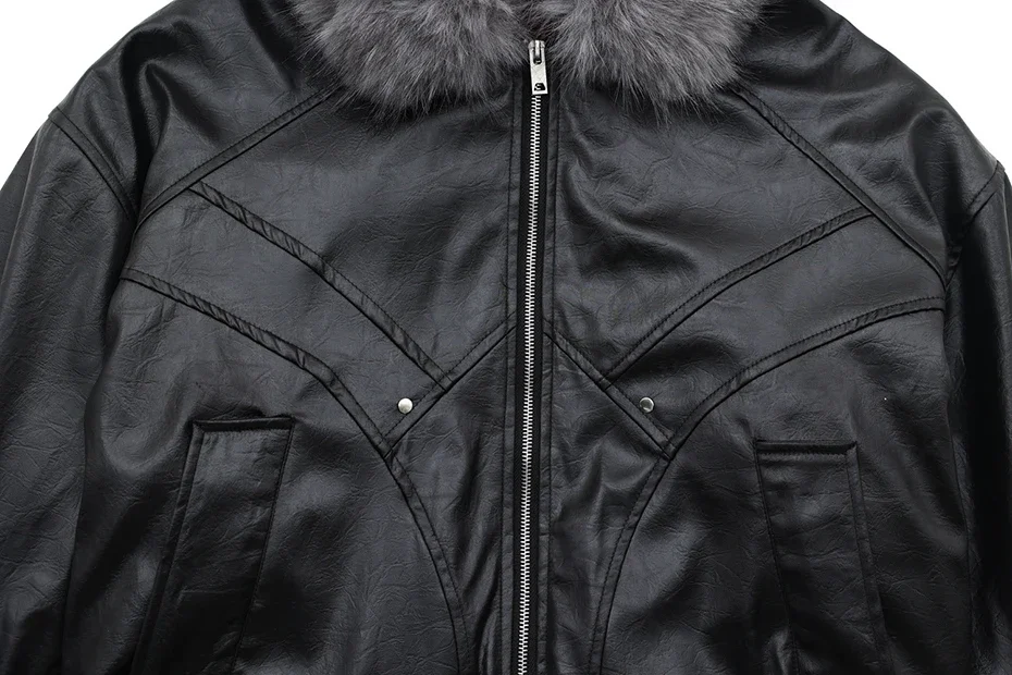 Vintage Men Winter Jackets Fur Collar Fleece Warm Parkas Coats Streetwear Harajuku Leather Jackets Casual Padded Jackets Outwear