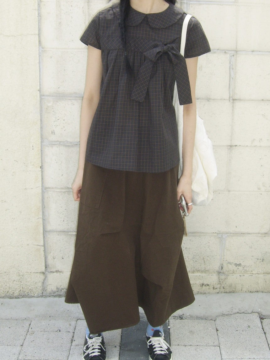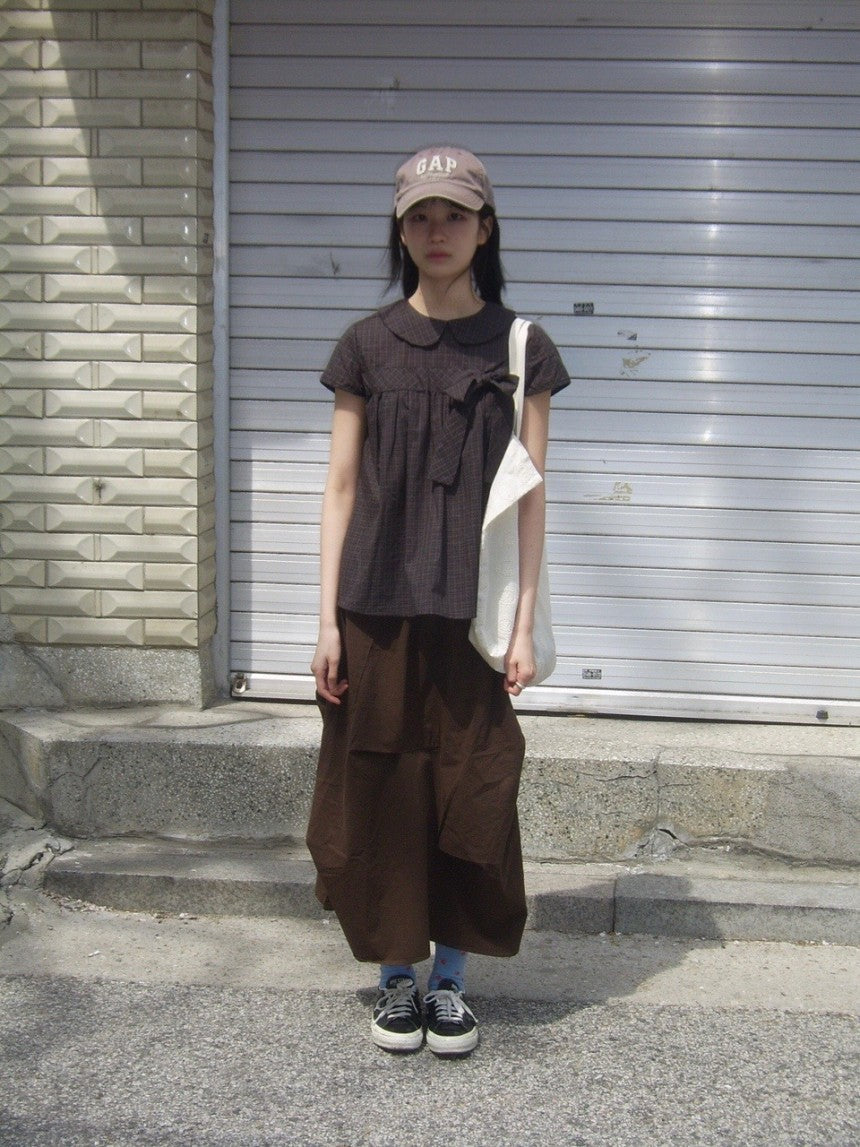 Vintage Plaid Shirts Women Japanese Harajuku Bow Peter Pan Collar Blouses Summer Korean Aesthetic Short Sleeve Casual Tops New