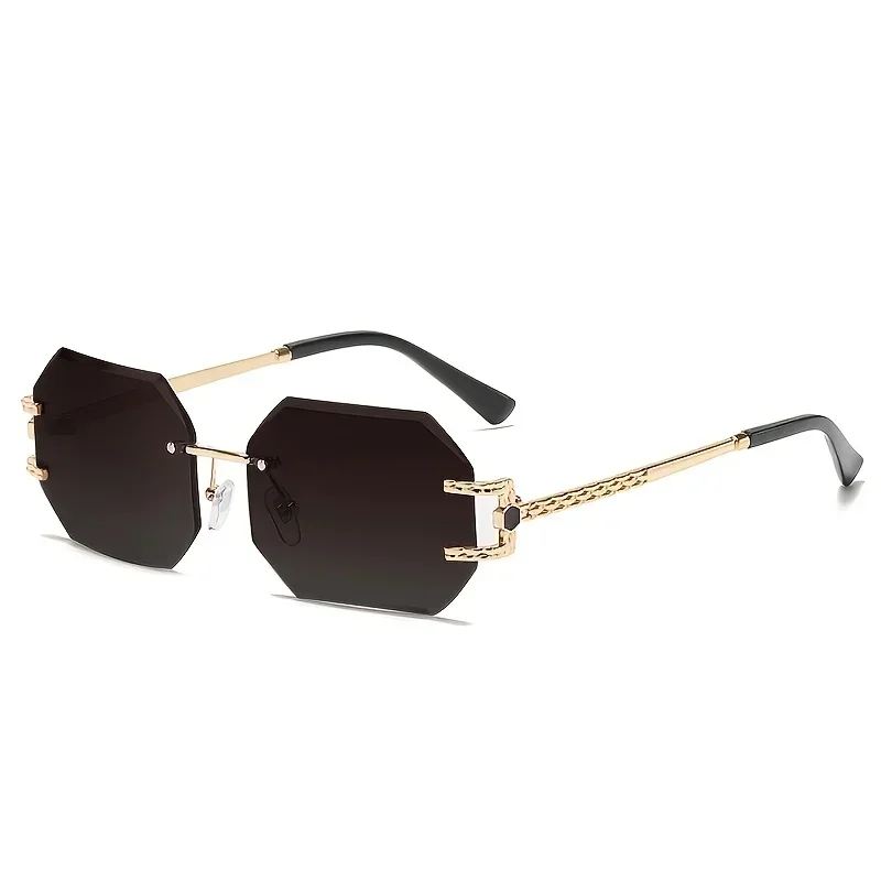 Vintage Rimless Sunglasses Women Men Brand Designer Polygon Sun Glasses Female Trendy Rectangle Cutting Len Shades Eyewear UV400