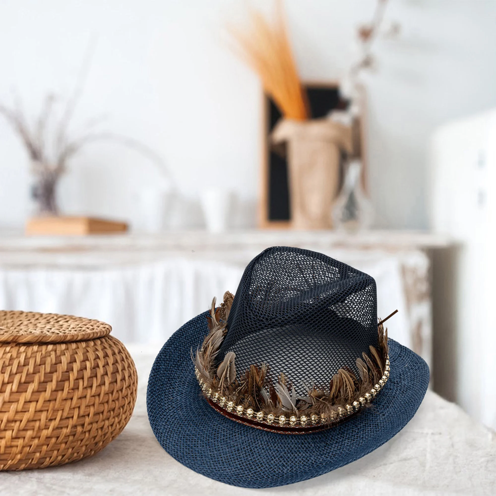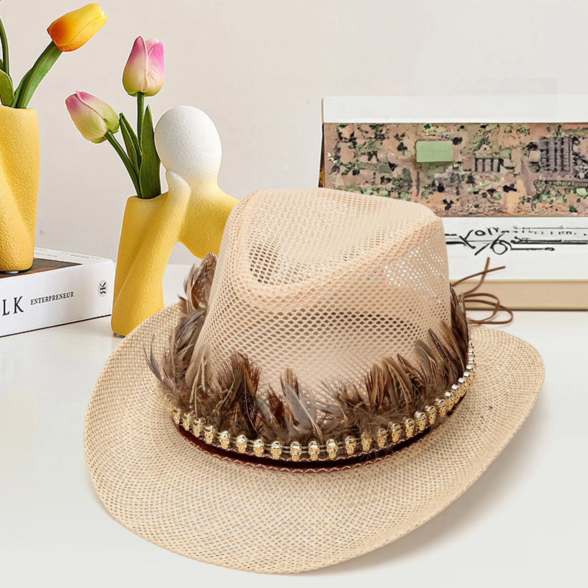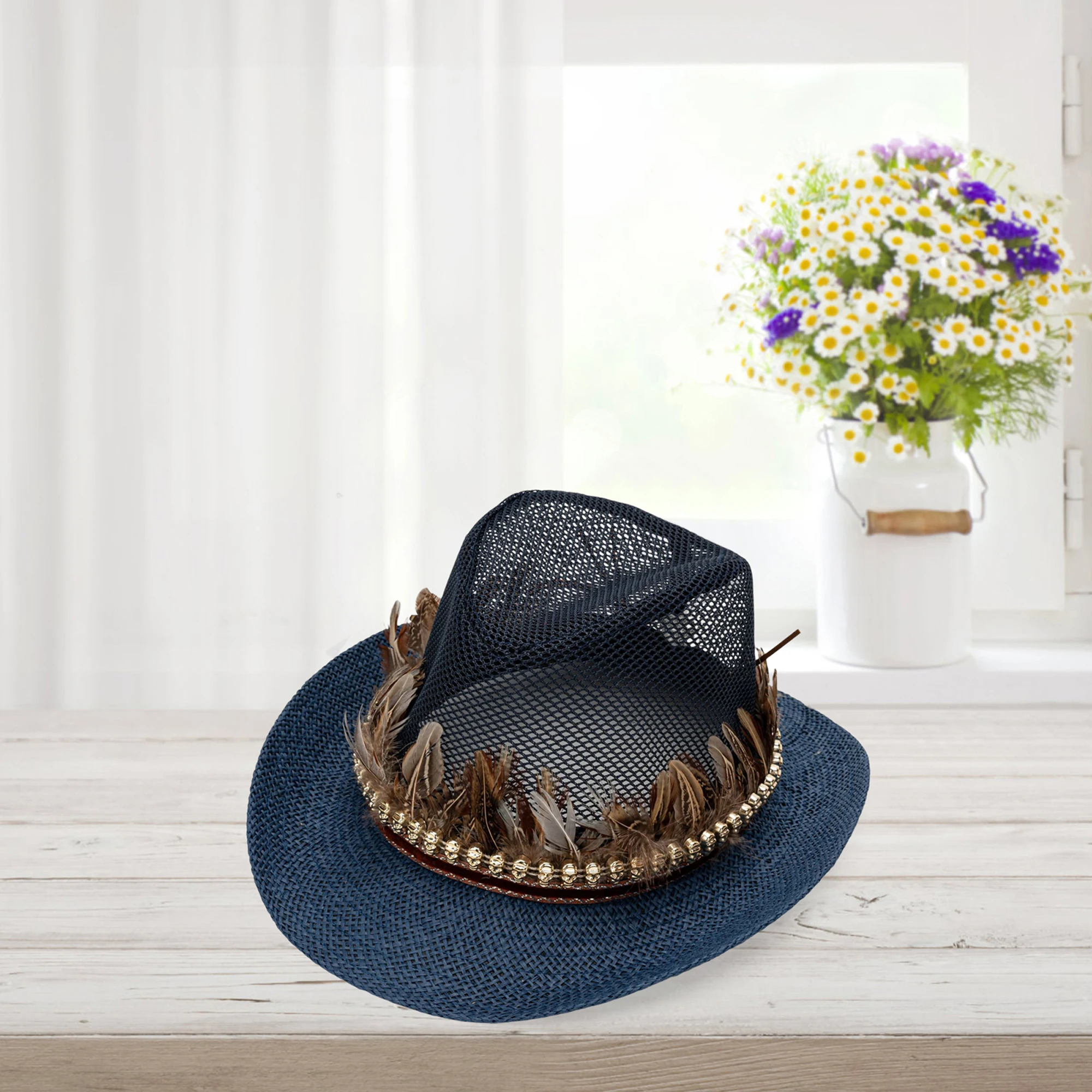 Vintage Style Women Men Feather Hat Elegant Mesh Wide Brim Sun Hat for Casual Party and Outdoor Events