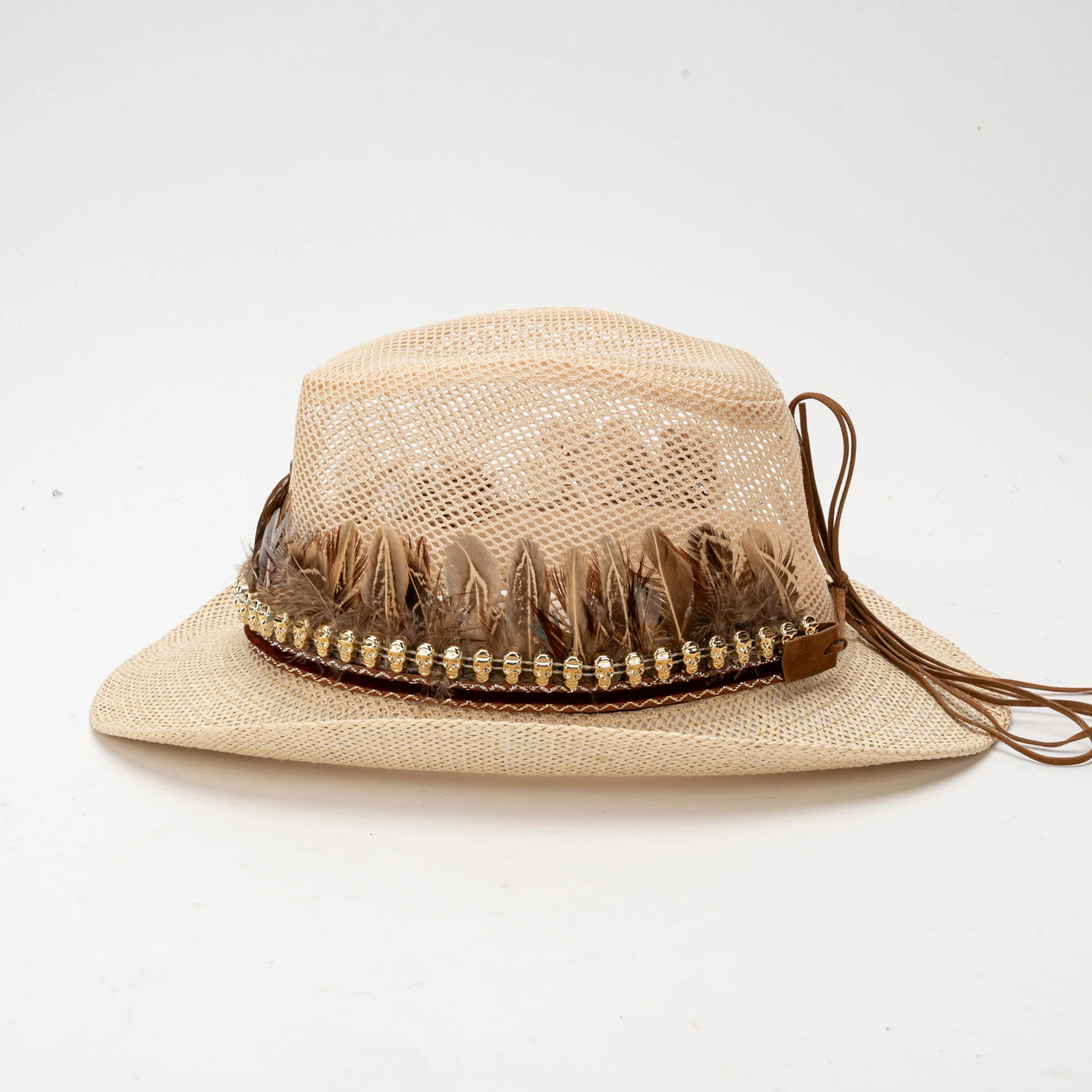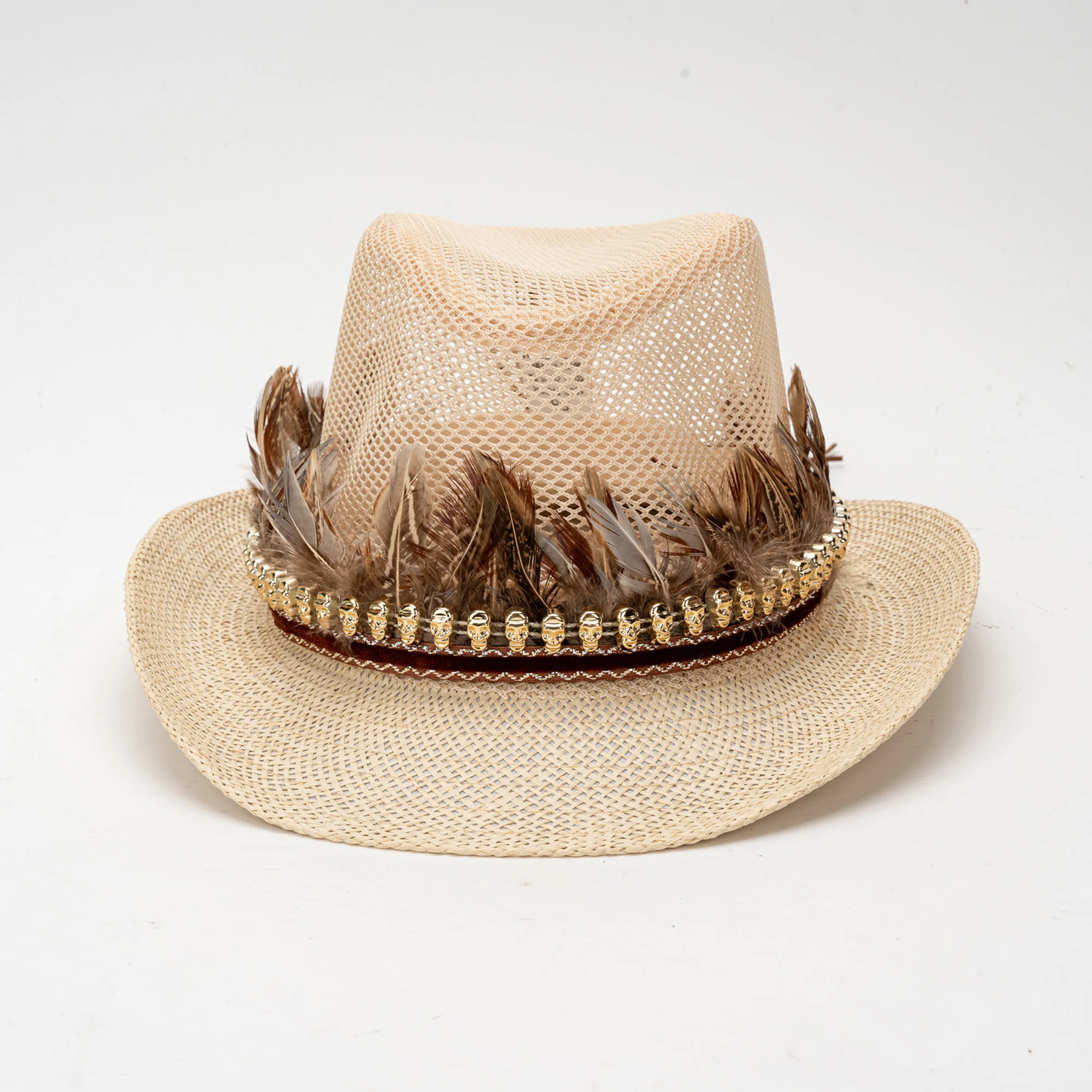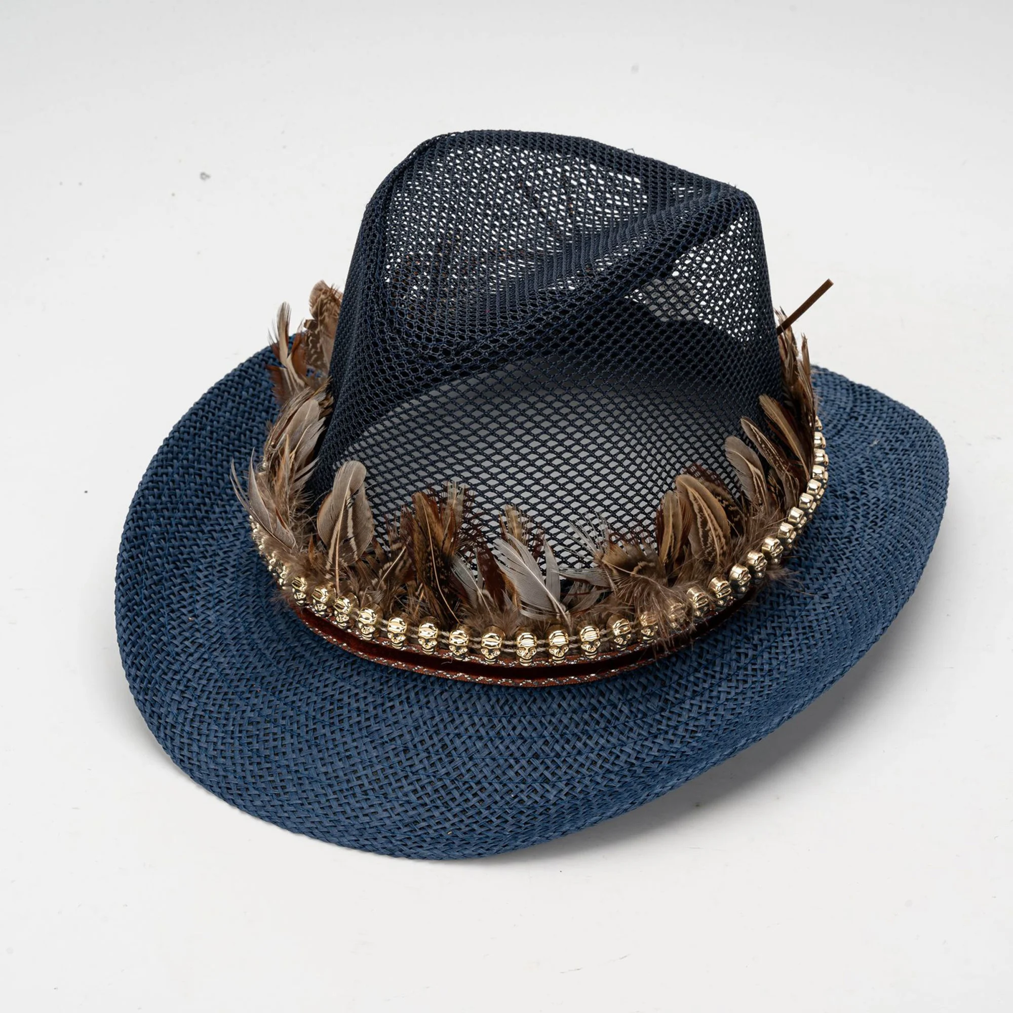 Vintage Style Women Men Feather Hat Elegant Mesh Wide Brim Sun Hat for Casual Party and Outdoor Events