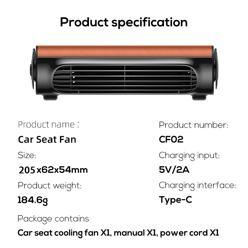 Vissko Portable Car Seat Fan for Front Rear Seat Passenge USB Powered Headrest Cooling Air Fan Adjustable Strap Car Interior Fan