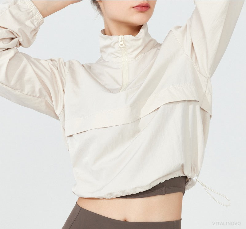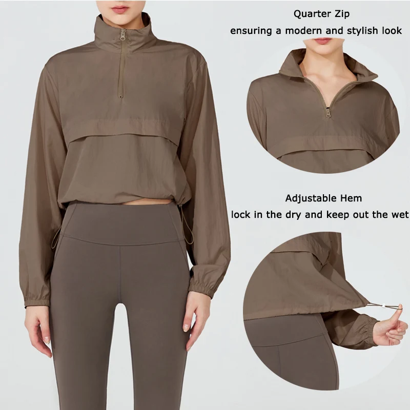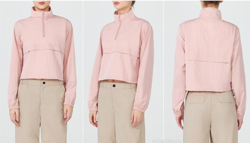 This crop light jacket is suitable for running, hiking, jogging, fishing, fitness, exercise, workouts, training, sports, travel, and various other outdoor activities.