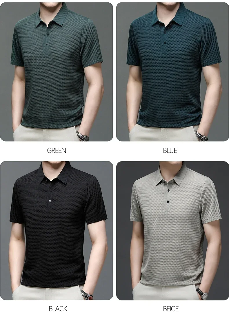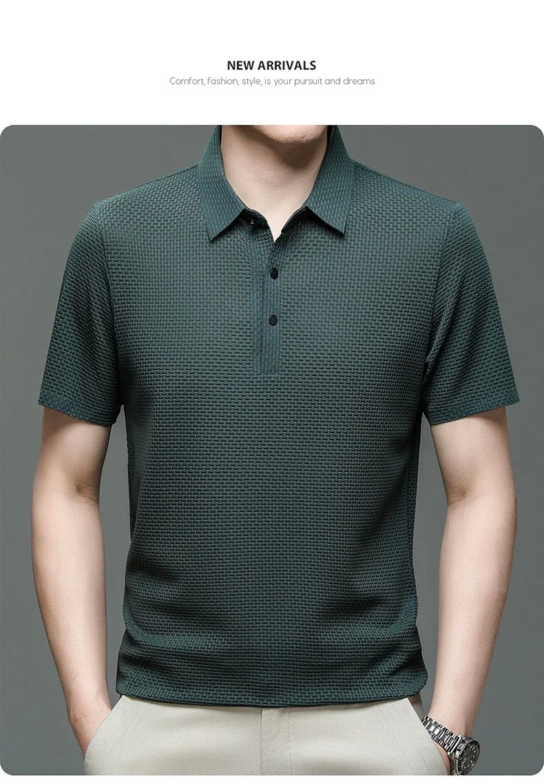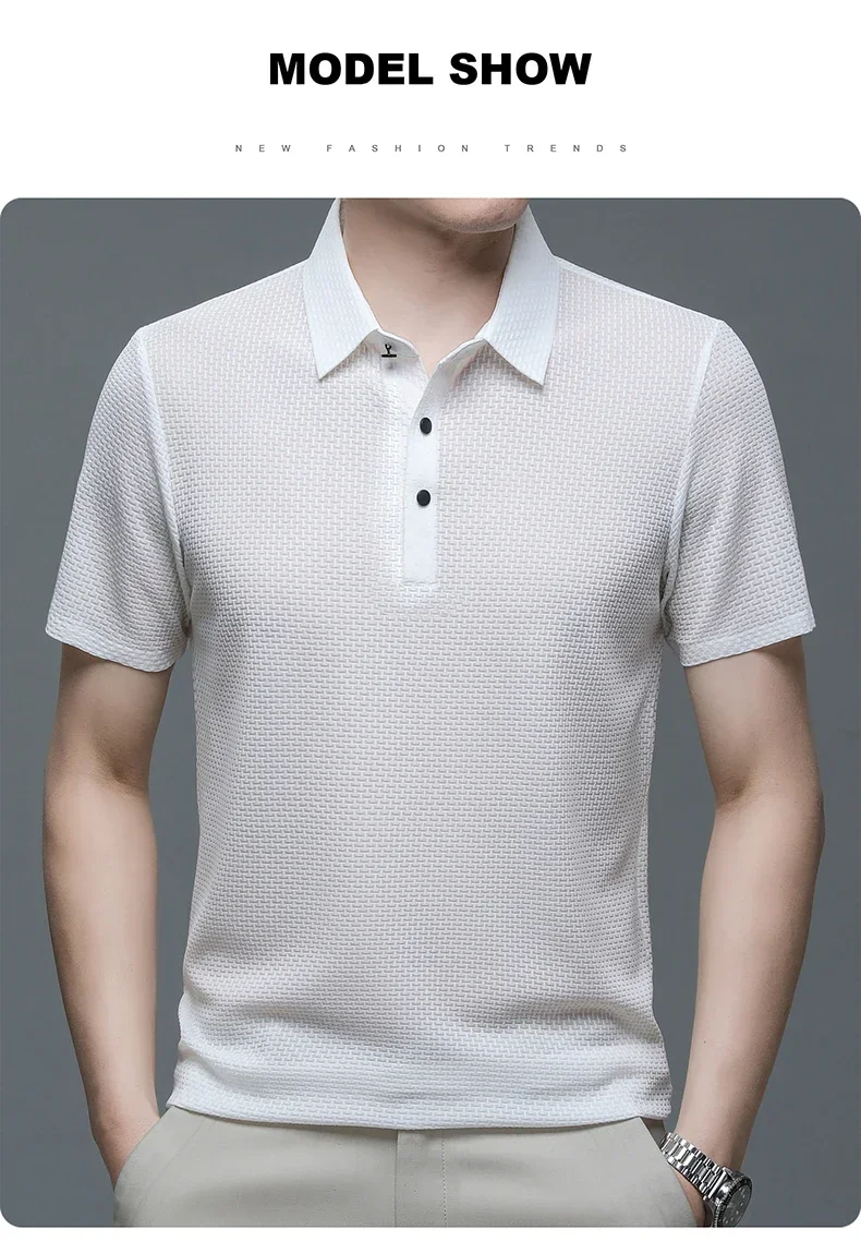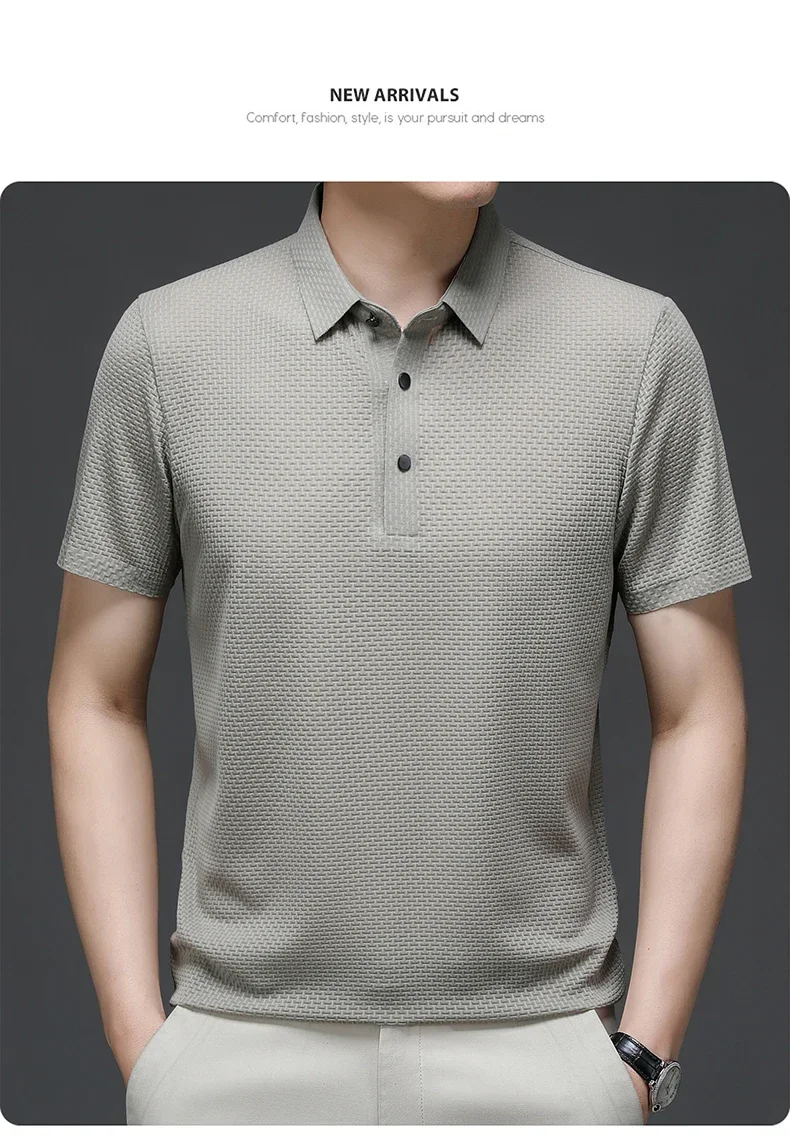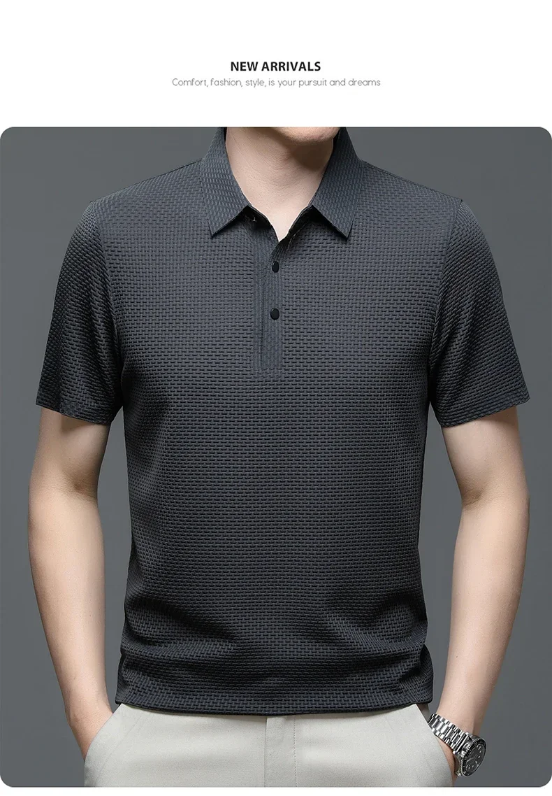 Waffle Ice Silk Short Sleeved Men's Polo Shirtsweat Absorbing Casual Shirtcool and Breathable New Style High-quality Busin