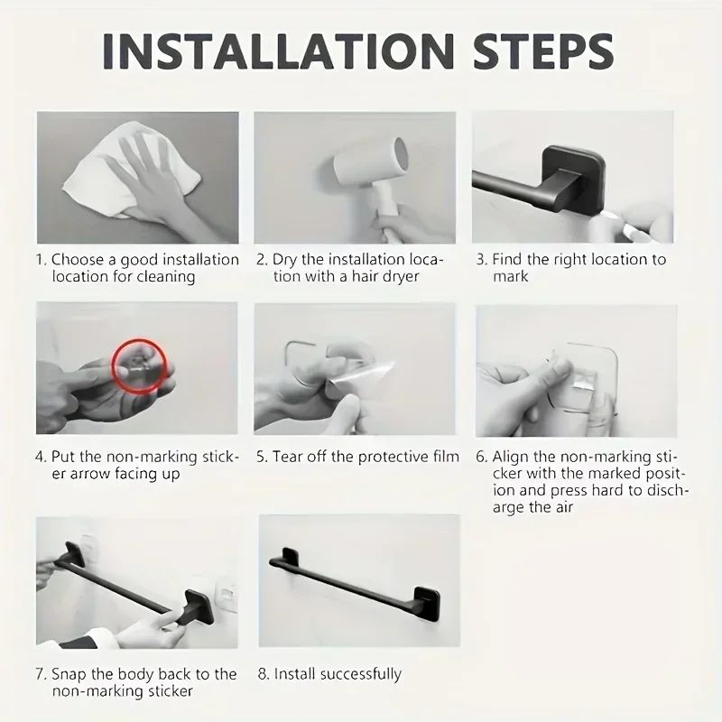 Wall Mounted Towel Rack Bathroom Storage Rack No Drilling Bathroom Horizontal Bar Towel Rack Kitchen Bathroom Accessories