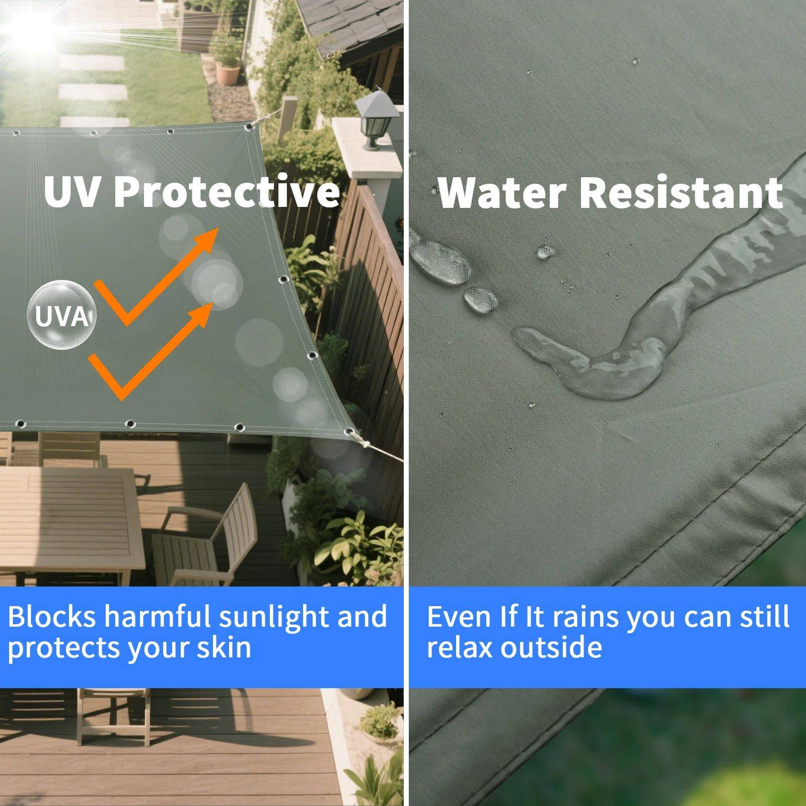 High quality: Shade sail made of 100% high quality and dense polyester fabric, can effectively achieve 95% UV protection and 90% shade rate. Can drastically reduce the temperature and create a cool, comfortable outdoor area. This outdoor shade sail is UV protected, waterproof, tear-resistant and can reach.