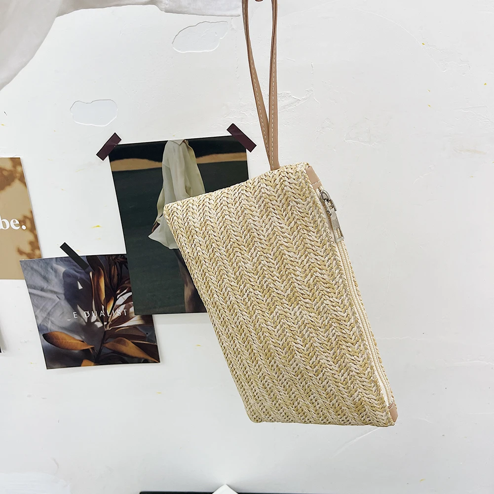Weaving Bag Fashion Ladies Wristlet Clutch Women Daily Money Phone Clutch Straw Woven Coin Purse Beach Wallet Card Business Bag