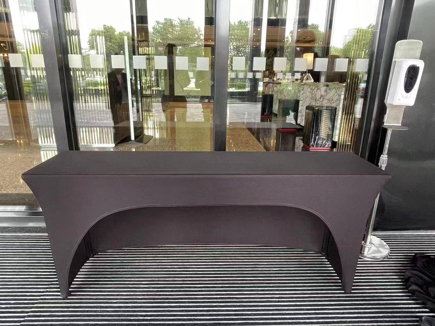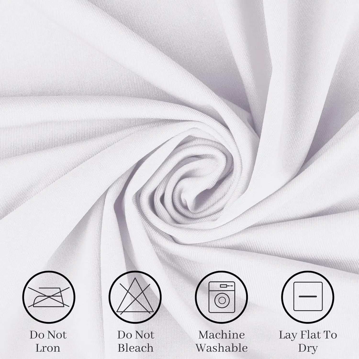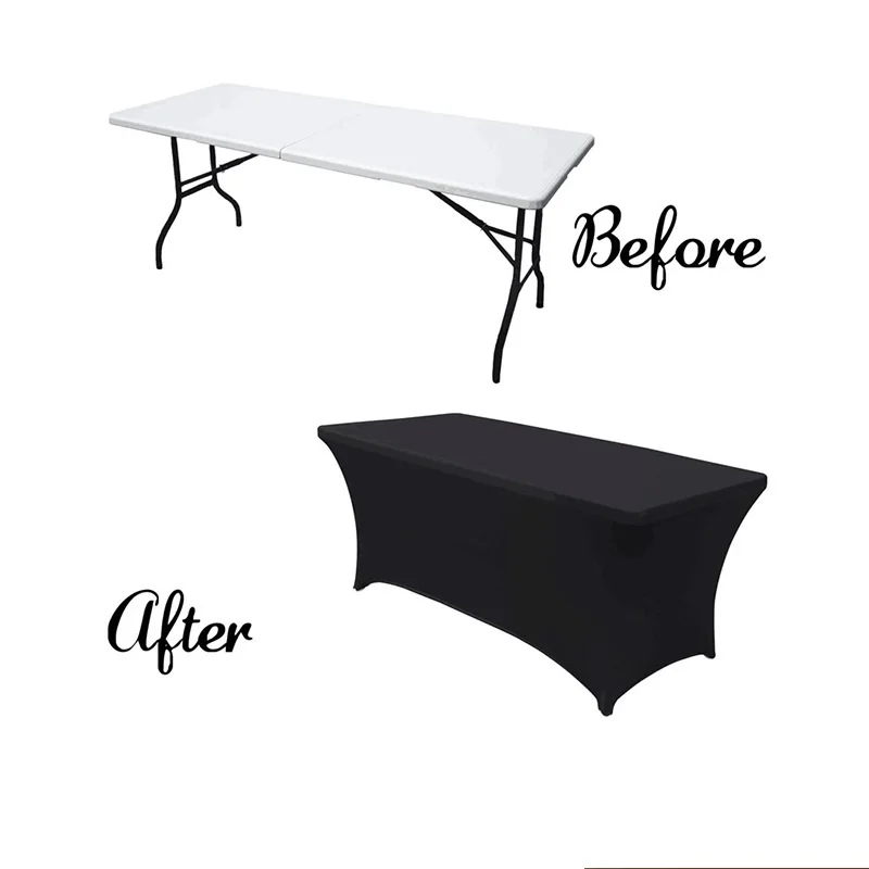 Tear & Wrinkle Resistant Table Covering with Open Back Design: Well crafted from high-quality 4-way stretchy spandex fabric (15% Spandex and 85% Polyester), these elastic table covers are both tear and wrinkle resistant. Compared with normal tablecloths, our open back design elastic tablecloth allows you to sit comfortably behind the table without the tablecloth getting in the way and also allows easy access to products or literature stored under the table.