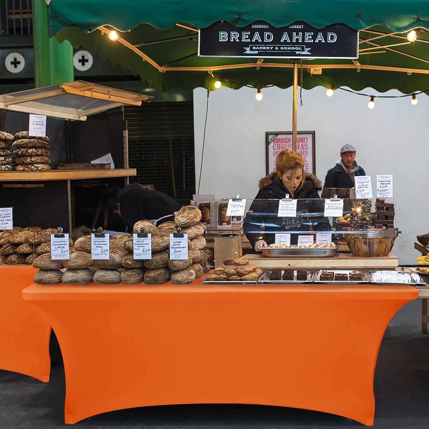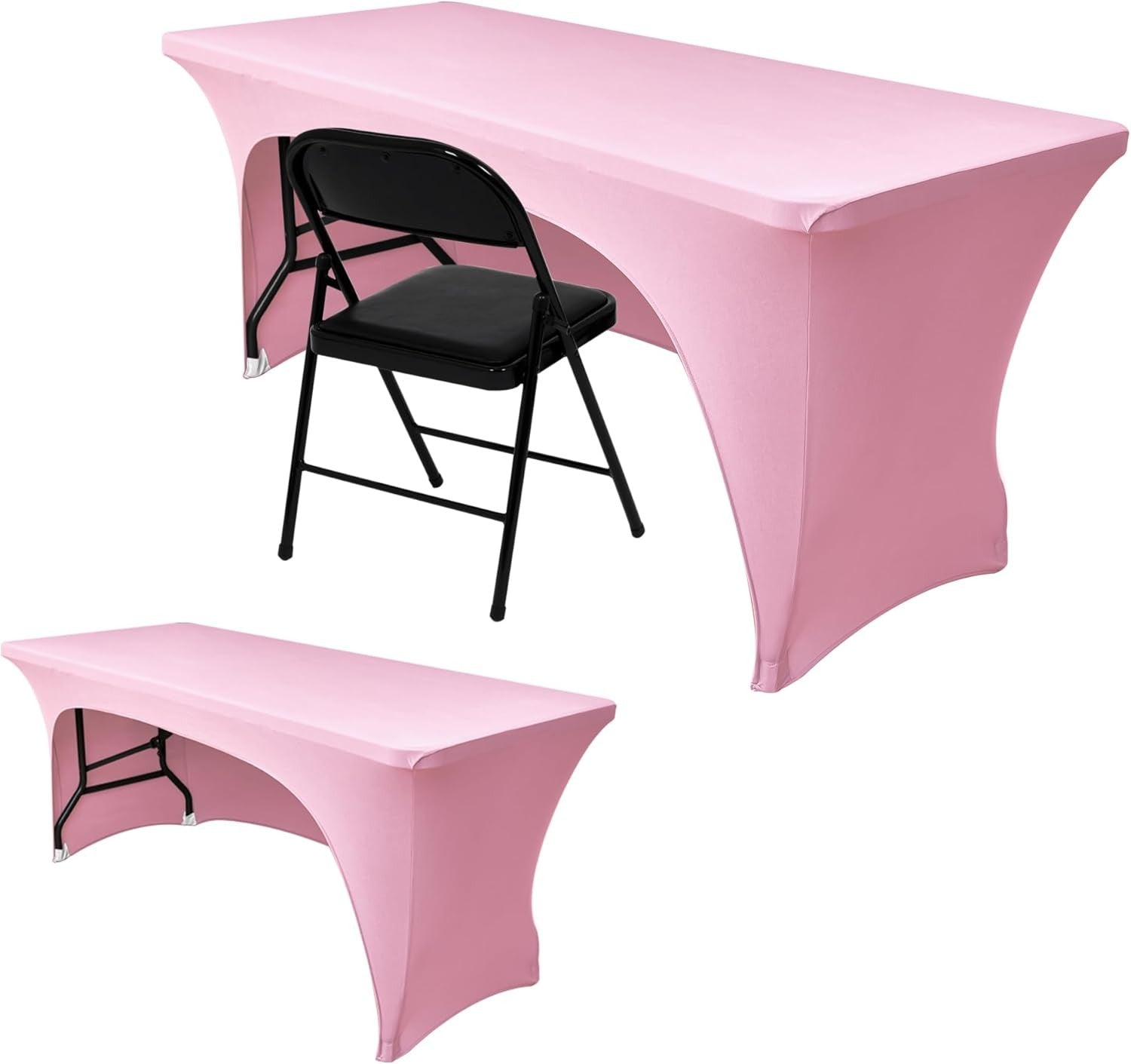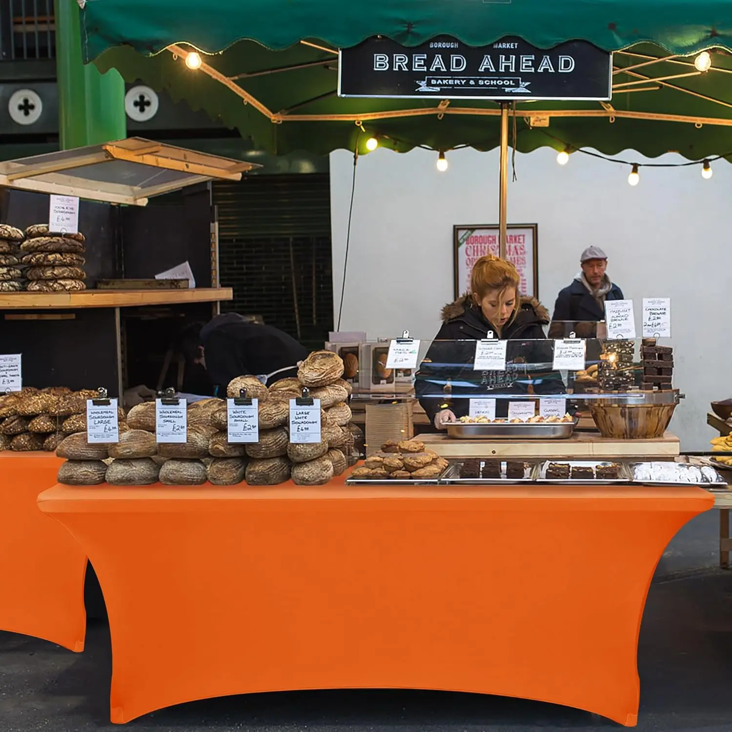Tear & Wrinkle Resistant Table Covering with Open Back Design: Well crafted from high-quality 4-way stretchy spandex fabric (15% Spandex and 85% Polyester), these elastic table covers are both tear and wrinkle resistant. Compared with normal tablecloths, our open back design elastic tablecloth allows you to sit comfortably behind the table without the tablecloth getting in the way and also allows easy access to products or literature stored under the table.
