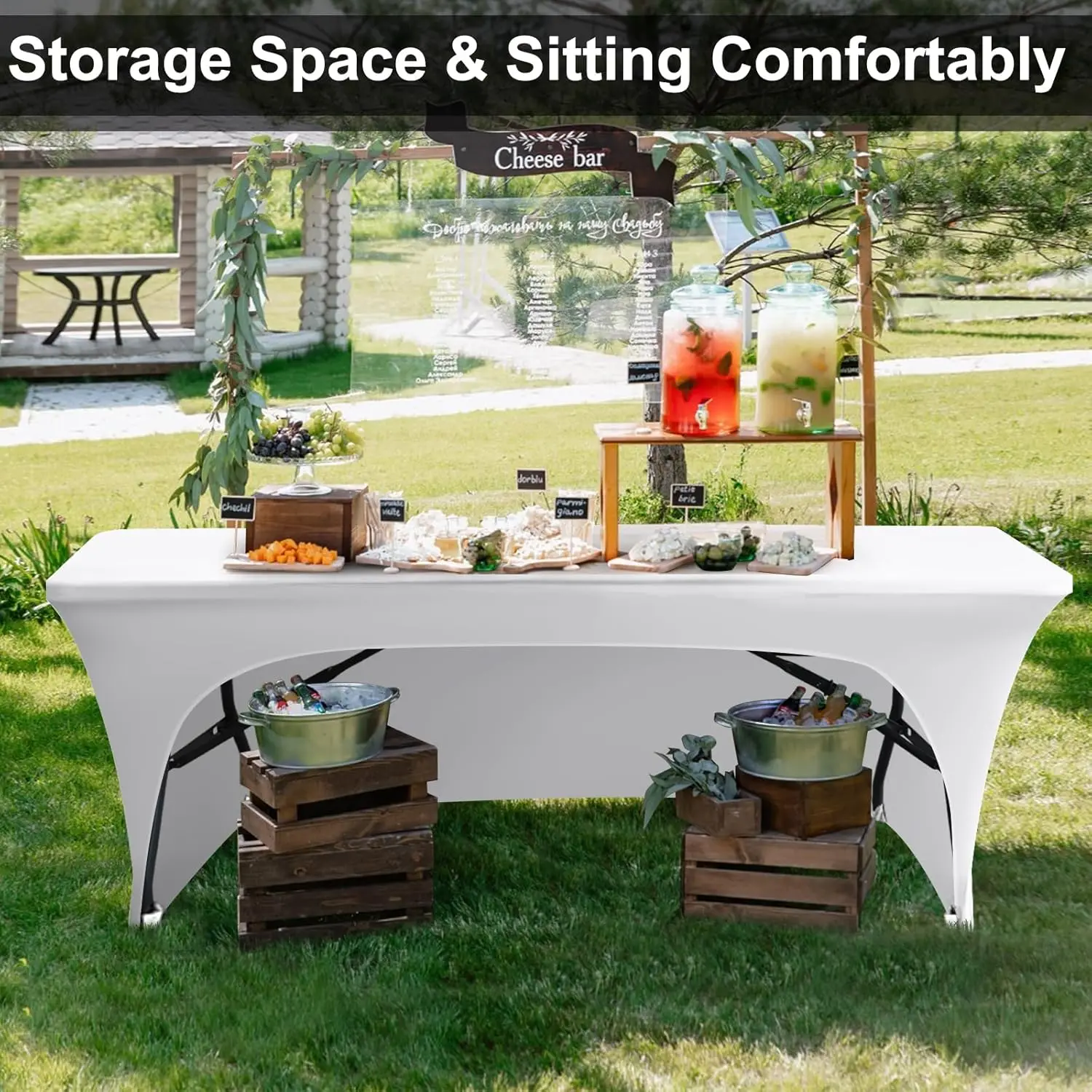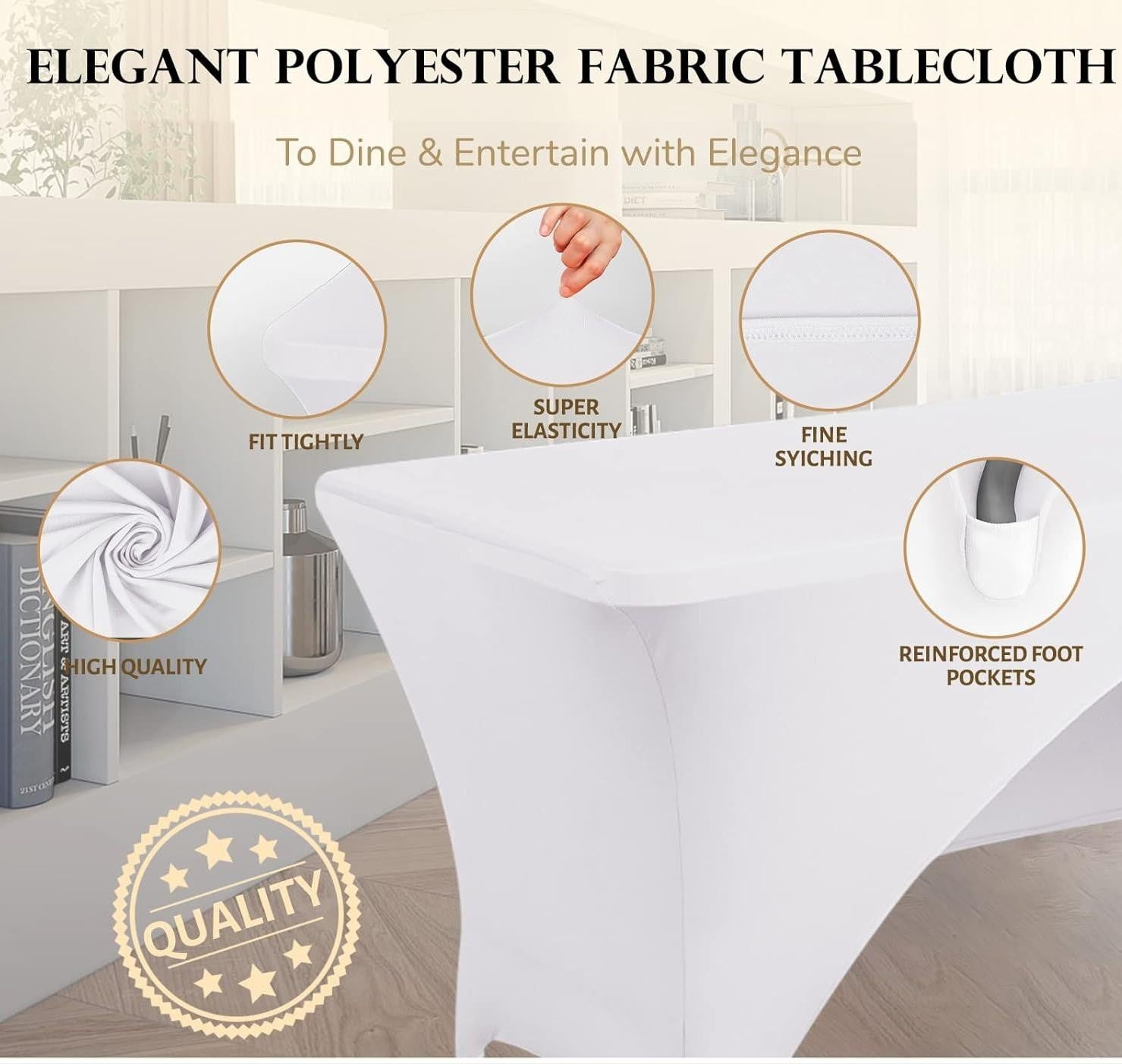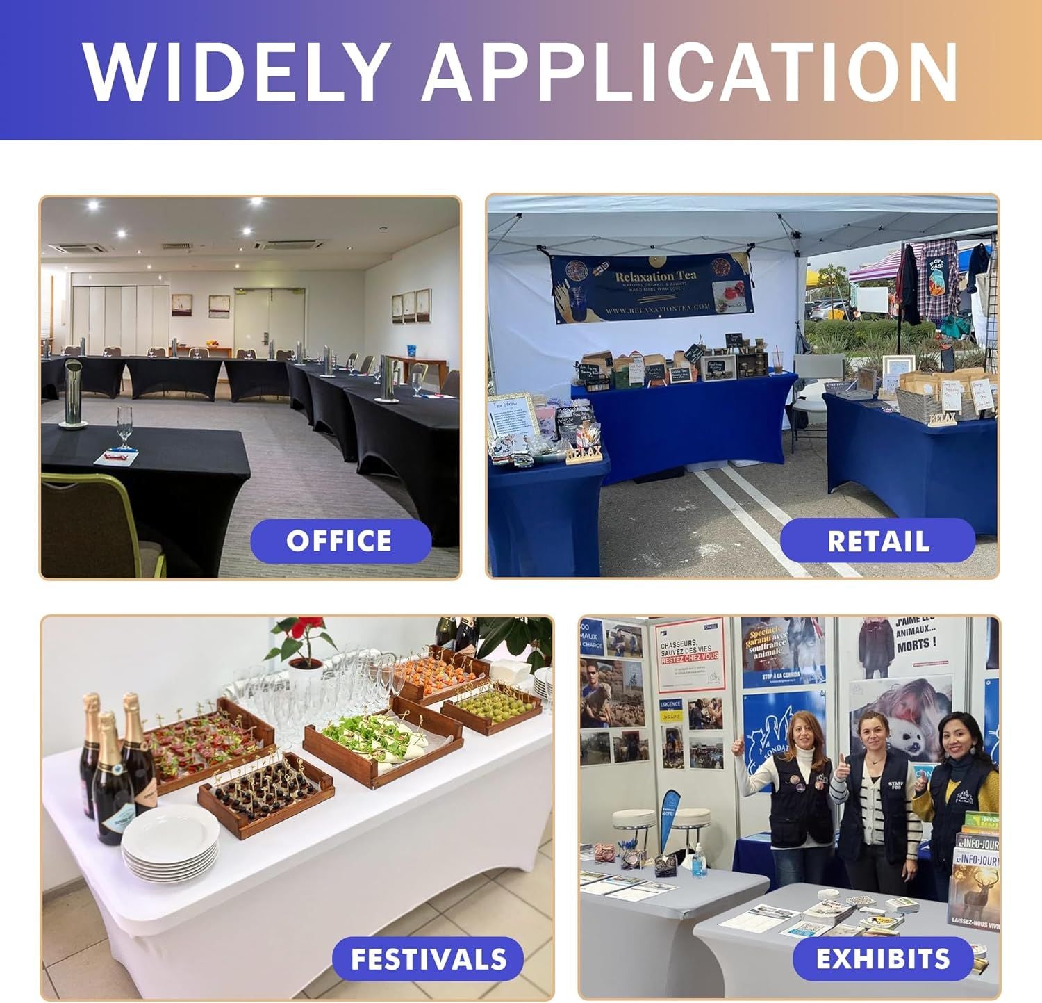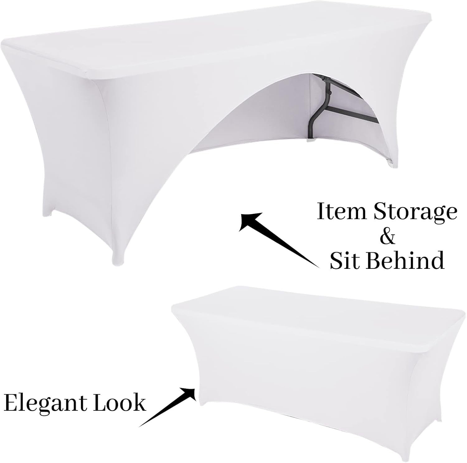 Versatile Fitted Tablecloth Covered You From Most Special Event Uses: Our stretchy tablecloth delivers a smooth, wrinkle-free look that is ideal for wedding, banquets, parties, meeting rooms, trade shows, special events or any occasion that requires someone to sit behind the table. These amazing table coverings are also great for conferences, conventions, pop-ups, any meeting or event where you need to store boxes or products under a table, while keeping a professional clean look in the front.