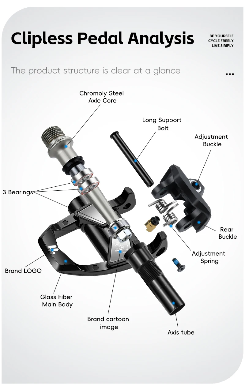 Belonging to the bearing pedal category, these pedals provide smooth rotation for enhanced pedaling efficiency.