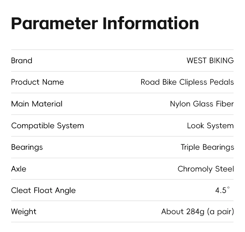 WEST BIKING Road Bike Pedals Nylon Bicycle Locking Pedals Cycling Bearing Cleats Clipless Pedal Look System With Locking Plates
