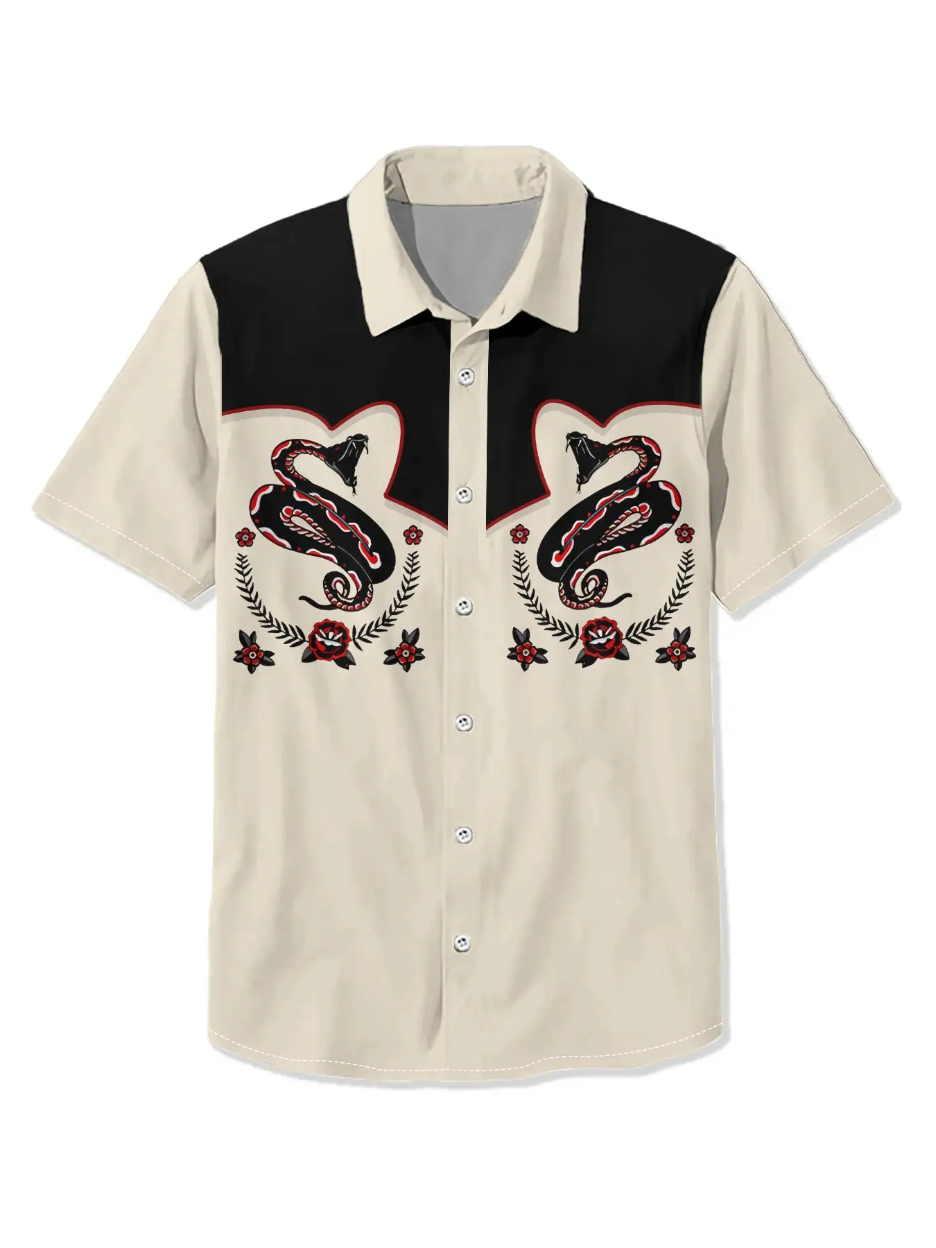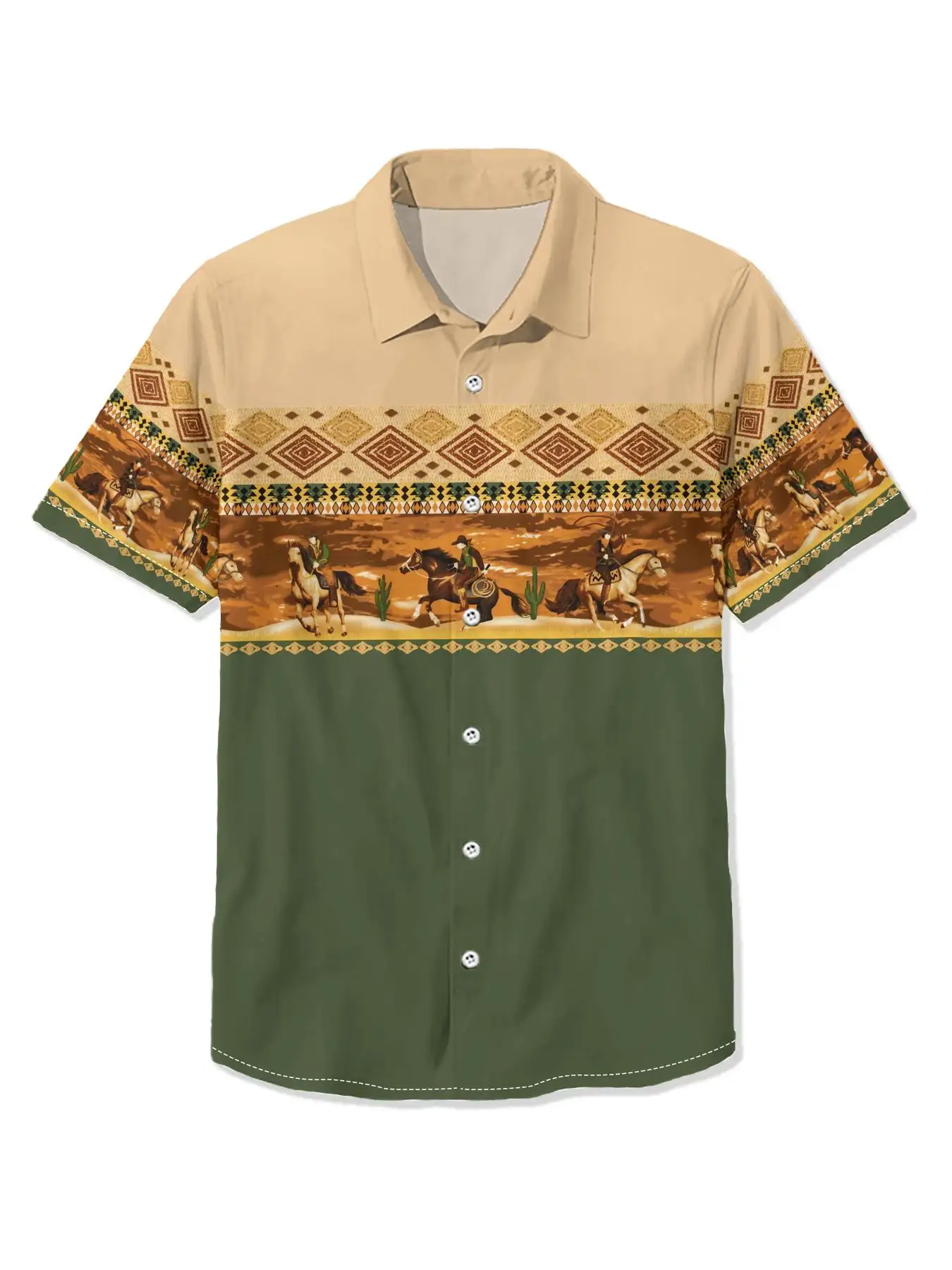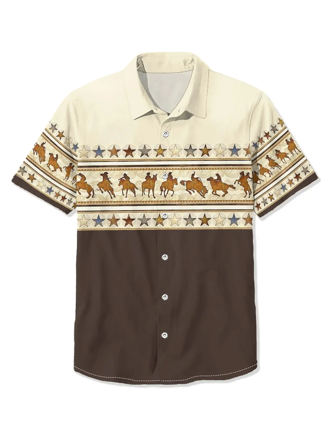 West Cowboy Shirts For Men Vintage Short-Sleeved Shirt Tops Ethnic Blouse Animal Cats 3d Print Casual Shirt Men's Clothing 3xl
