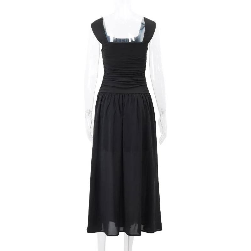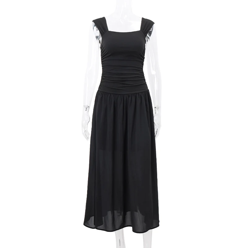 WhereMery Elegant Slip Long Dresses Sexy Women Ruched Bodycon Solid Maxi Dress S