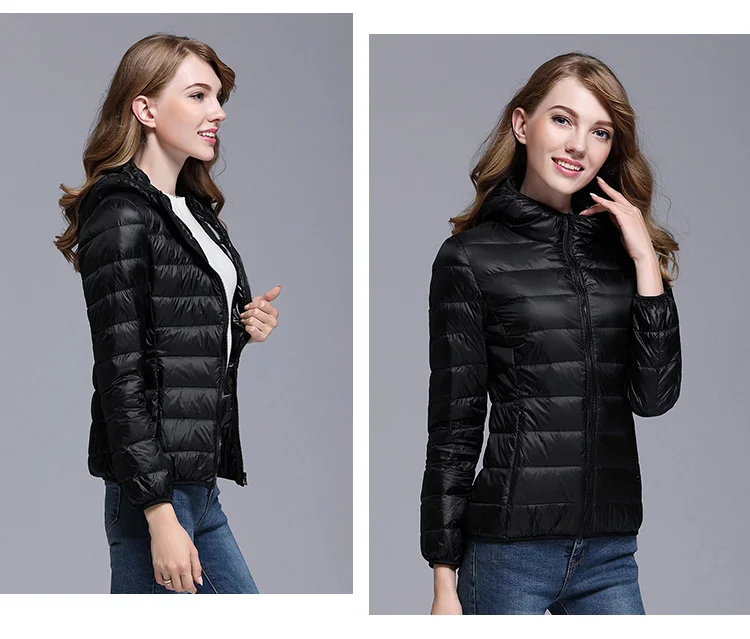 White Duck Down Winter Hoody Jackets Ultra-light Women Down Coats Puffer Long Sleeve Warm Slim Portable Thin Female Outwears 7XL